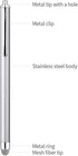 Stylus Pens for Touch Screens, Mesh Fiber Capacitive Stylus 6-Pack, with 6 Replaceable Mesh Tips Black, White, Pink, Green, Sky Blue, Silver UNIVERSAL COMPATIBILITY: 100% Compatible with all capacitive touch screen smarts and tablet series. HIGH QUALITY STYLUS: Length "(136mm), Pen tube diameter "(, mesh fiber tip diameter " (7mm) ,Weight , made from stainless steel, no plastic parts, real pen feeling. SUPER SENSITIVE FIBER TIP: Smooth use on any touch screen of modern digital devices, responsive as finger touch. REPLACEABLE FIBER TIP: Replacing can be done within a second without any tool extending of the stylus. PACKAGE INCLUDED: 6pcs Styluses ( black/white/pink/green/sky blue/silver ) + 6pcs mesh fiber tips Color:6Colors Contents: 6 x Capacitive touch screen stylus 6 x Replaceable mesh fiber tips Specification: Length: ” (136mm) Pen tube diameter: " ( Tip Diameter: " ( Weight: ( Material: Stainless steel Fiber tip feature: Replaceable Color: black, white, pink, green, sky blue, silver Universal Compatibility: 100% Compatible with all touch screen devices such as iPod, iPad Mini, iPad air, i 7/7s 8 Plus, Samsung Galaxy Tab, Asus Transformer, Asus Nexus 7, Kindle Fire, Kindle Touch, Motorola Xoom Tablet, Blackberry Playbook, and many more. About the Stylus Well made built with durable stainless steel stylus/styli can be comfortable to be gripped, no plastic parts , real pen feeling. You will feel smooth and responsive as finger use on any digital touch screen when you glide. Ultra-sensitive fiber tip is the improvement of rubber. Our Service & Credibility With the principle of credibility, group strictly control the quality inspection for each part of the stylus in view of we have more than 10 s professional production experience. Our Promise to You If for any reasons you are not satisfied with our product, please do not hesitate to contact me first. At the we will take responsible for the quality of product. To find more different new designs of touch screen stylus/styli, pls search on .