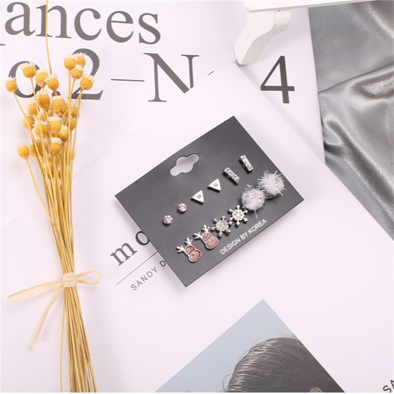 6 Pairs Elk Snowflakes Hairball Ear Studs Jewelry Christmas Fashion Accessories Features: RELIABLE The Christmas pendant earrings are mainly high alloy, which is hypoallergenic and not easy to fade, providing you with a comfortable wearing Christmas Theme: The earrings are decorated with snowflakes, elk, hairball, diamonds and other Christmas very and delicate. It is the best mom, sister, friend, classmate, lover's birthday, anniversary, holiday, graduation, Christmas, Valentine's Day and other occasions. You can wear them on many occasions like Christmas party, cosplay, masquerade, birthday, holiday or everyday wear to make you more attractive. What's In The Package: The package contains 6 different pairs of Christmas earrings, which are rich in styles for you to choose from, which can be a great addition to the festive mood and help you have a merry Christmas. Specifications: Alloy Size: As Shown Package Includes: 1 Set Ear Studs(6 Pairs) note: Please allow 1-2cm errors due to manual measurement, make sure that you do not mind before you order. Due to the difference between different monitors, the picture may not reflect the actual color of the item.