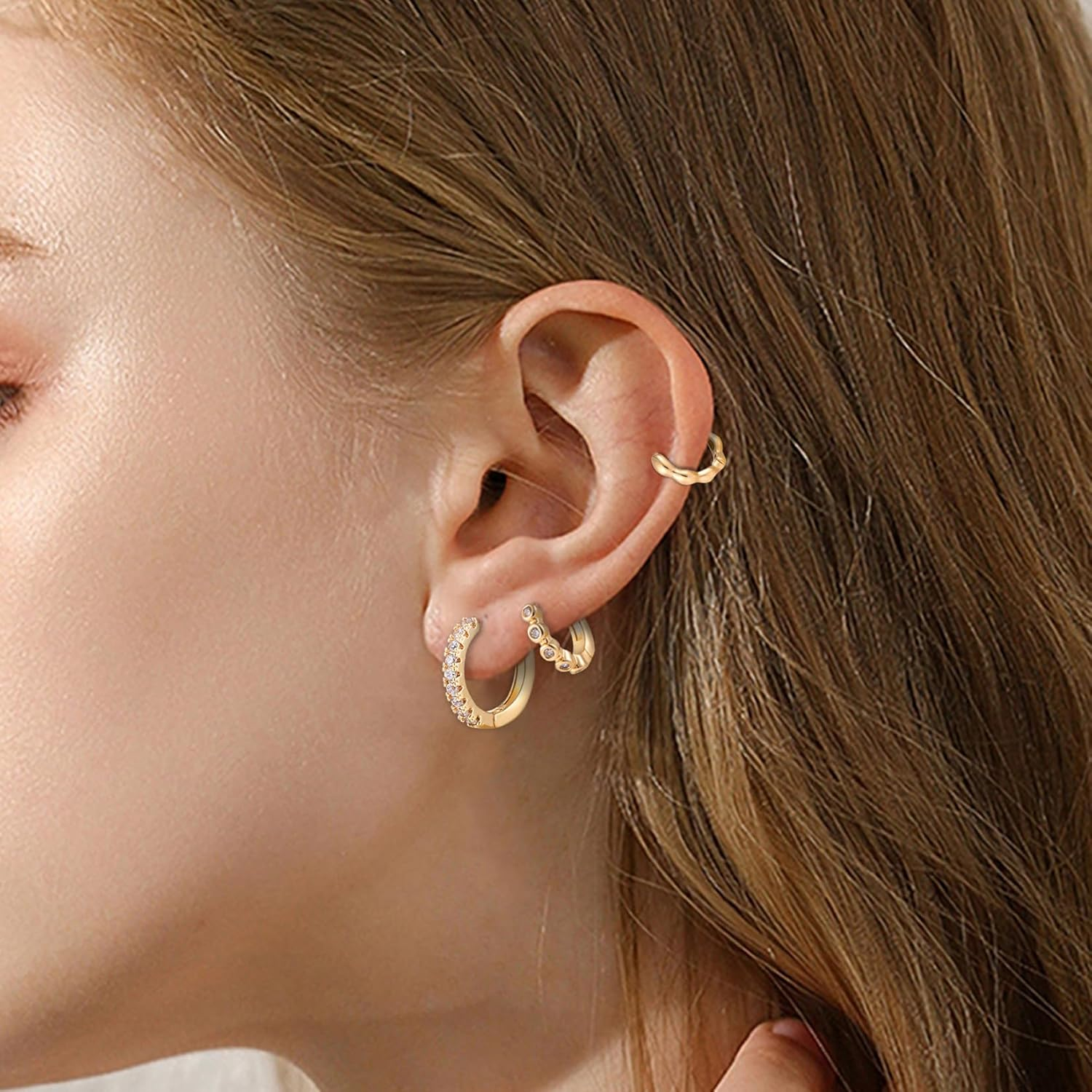 These gold hoop earrings are stunning and so versatile! The 14K gold plating gives them a luxurious look without the high price tag. They're lightweight, comfortable to wear all day, and perfect for stacking or wearing alone. I love that they’re hypoallergenic—no irritation at all. The hinged design makes them easy to put on and secure. Great for everyday wear or dressing up, and the set of six means plenty of options. Such a stylish and affordable find!
