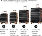 The 6 piece sets include 16’’ underseat carry-on luggage, 20’’ carry on luggage, 24’’ checked luggage, 28’’ large luggage, a weekender travel bag and a toiletry bag. There are two options of three piece sets. Option A includes a 20’’ luggage, a travel duffel bag and a toiletry bag. Option B includes a 20’’ luggage, a backpack and a toiletry bag. The side-Mounted TSA approved combination lock makes your belongings secured and organized in the luggage. The fully-lined interior divider of zippered divider helps you keep everything organized. Crafted with ABS for durability and versatility, the luggage is lightweight and built to last. Made of polyester fabric, the bags are mild waterproof with multiple pockets for organization. 4 Silent spinner wheels allow smooth movement and very high ride comfort. Luggage passed the drop loading test and wheel rolling test. The 3 level retractable handle providing easy maneuverability and relieving arm pressure while on the movement. Best choice for long time usage. The duffel bag and backpack are both designed with the trolley sleeve, so you can keep your property safe by attaching them to the retractable luggage handle. The extra space in the duffel bag allows you to pack more luggage for your convenience. The laptop compartment of the travel backpack protects your computer from damage. Product Description 360° SPINNER WHEELS 4 silent spinner wheels allow smooth movement and very high ride comfort. TSA LOCK 4-piece luggage comes with a TSA-approved combination lock for security of your belongings. 3 LEVEL TELESCOPING HANDLE 3-step ergonomic trolley handle relieving arm pressure while on the movement. 1 TRAVEL BAG & 1 COSMETIC BAG The perfect carry-on compliant bag for airline travel. DRY WET SEPARATED BAG The high density waterproof material can help you to separate dry items and wet items. MULTI-FUNCTION DESIGN Expasion design and luggage sleeve with zipper pocket making airport travel a breeze.