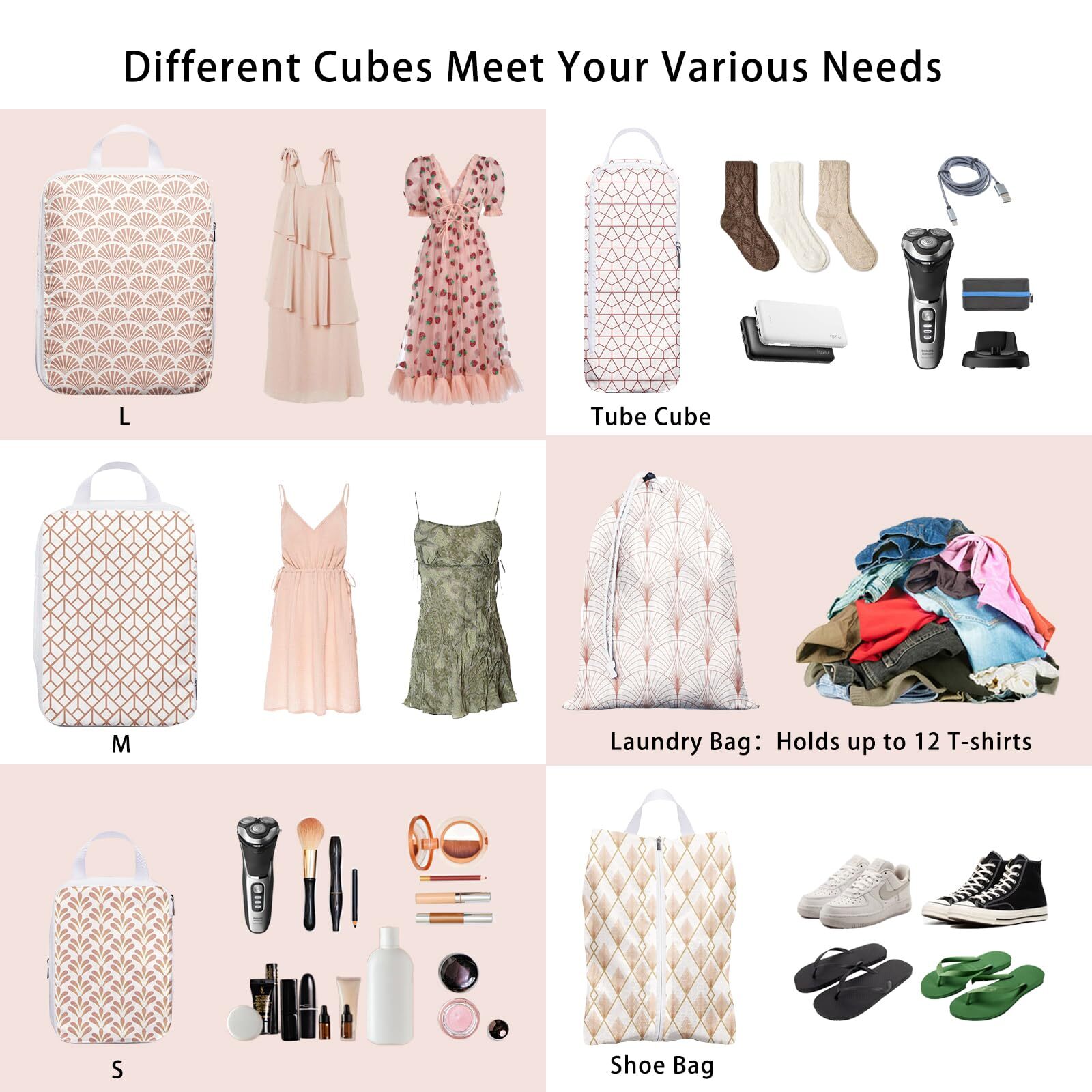 We will always encounter many challenges in our life journey, yet the world continues to follow its natural rhythms. Seasons come and go, mountains witness the fleeting bloom of flowers, and rivers ebb and flow, serving as constant reminders to cherish the present moment. As we count ourselves fortunate to explore this world, we hope that our Hitanfe travel packing organizers will be steadfast companions on your journeys, encouraging a balanced life and liberated spirit. Warm Tips: 1.Equipped with a simple two-way SBS zipper and meticulous stitching, our travel cubes offer unparalleled durability. 2.Our packing cubes, adorned with various exquisite prints, efficiently categorize your belongings, saving both space and time during travel. 3.Conveniently organize your closet and safeguard your possessions from dust and damage. 4. Available in multiple sizes, our travel compression bags fit most totes, backpacks, and duffel bags. They are easy to carry and feature sturdy handles for effortless transport. Warm Notice: Should you encounter any issues with your order, please don't hesitate to contact us promptly for a satisfactory resolution! Let me know if there's anything else you'd like to adjust! Ideal Design for Travel Packing Cubes: Are you tired of rummaging through a jumble of clothes to find your T-shirts while traveling? Worried about leaving valuables behind in your hotel room? With our travel packing cubes, these concerns disappear. Each packing cube is adorned with a distinctive pattern design that not only adds a personal touch but also allows for quick identification of its contents. Stay organized effortlessly and locate your items within seconds. Efficient Compression Design for Space Saving: Featuring a robust and smooth SBS two-way zipper, our travel organizer bags for luggage are designed for quick and effortless access. They not only secure your belongings effectively but also compress clothes by expelling excess air through an additional zipper. While not a conventional vacuum bag, this method optimizes storage space, preventing unnecessary wastage. Lightweight & Machine Washable: Crafted from quick-drying Oxford fabric, our packing cubes maintain their shape and color over time. Their lightweight nature ensures that they organize your clothes neatly in your luggage without adding extra weight. The waterproof Oxford fabric protects your items from moisture and stains, while its sunscreen and wear-resistant properties guarantee durability and reusability, making it ideal for enduring continuous travel. 6-Piece Packing Cubes Set: Includes 3 different sizes of compression packing cubes for travel, 1 makeup bag (tube cube), 1 travel shoe bag, and 1 drawstring laundry bag. Every experienced traveler understands the importance of organization, and with these compression travel cubes, packing becomes effortless. They maximize luggage and bag space utilization by 100%, facilitate item categorization, and prevent loss. Additionally, they streamline airport security checks for your convenience. Versatile Compression Packing Cubes: These packing cubes are lightweight, waterproof, portable, and foldable, making them ideal for organizing daily clothes. They are suitable for most airlines' carry-on luggage, handbags, weekend backpacks, and duffel bags, making them perfect for family vacations, business trips, holidays, hiking, camping, RVing, and travel adventures. Most importantly, if you're not satisfied with your purchase, we offer an immediate replacement or refund.