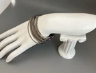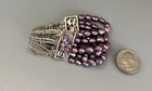 BRACELET 6 Rows Purple Beads w/16 Fine Chains Connected w/2 Silver Bead w/ Purple/Silver Flower Beads on Either Side. Beautiful!, Approximately 7” Stretchy. See Photos (4306)