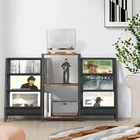 [Record Player Stand] The record player stand with vinyl storage can hold up to 280 vinyl records. The 6-tier record display stand is a stylish way to display your vinyl records and also at an easy access to pick from your collection. You no longer need to store your records in inaccessible cabinets. The top level of record player table dimensions: 15.35”(L) x 11.81” (W). [Record Player Stand] The record player stand with vinyl storage can hold up to 280 vinyl records. The 6-tier record display stand is a stylish way to display your vinyl records and also at an easy access to pick from your collection. You no longer need to store your records in inaccessible cabinets. The top level of record player table dimensions: 15.35”(L) x 11.81” (W). [Stable & Flexible] The record player stand is equipped with adjustable feet to ensure that the record player table remains stable even on uneven floors and protect your records vinyl albums and record players from damage. [High Quality Materials] The vinyl record storage is made of thickened wooden boards, sturdy iron, soft Oxford fabric. We adopt the high-quality materials to provide you with a secure, sturdy, protective and durable record holder. It's a perfect spot up top for guitar player. Product dimensions: 49.21"(L) x 11.81"(D) x 29.13"(H) [Stylish Design] Record player stand with vinyl storage combines modern style and retro style. It blends nicely with any style furniture you have. Large capacity vinyl storage design providing a compact and aesthetically pleasing storage solution for your expanding collection. This is an ideal gift for your family or friends who are vinyl lovers! [Easy to Assemble] Thick packaging protects every part of the Record Player Stand with Vinyl Storage. Detailed instruction is included in the package, which makes the assembly was a breeze. If you have any questions about our products, please feel free to us. We will provide you with the best customer support.