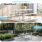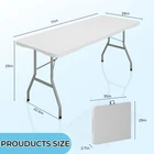Our 6ft folding table, crafted from premium HDPE material with a reinforced top, supports up to 330 lbs and features a gray-coated sturdy frame for added beauty and stability. It arrives fully assembled, requiring no tools or extra parts, ensuring immediate usability. Equipped with a metal safety lock at the joint, it locks securely when opened, preventing accidental folding. The table folds in half for easy storage and transport, complete with a carrying handle, making it perfect for both indoor and outdoor use, including dining, working, picnics, and parties. Its compact size when folded fits easily into a car trunk, enhancing its convenience for various occasions. Superior Quality and Sturdy: Our 6ft folding table is made of premium high-density polyethylene (HDPE) material with a reinforced top for extra durability. The sturdy frame is coated in gray for both beauty and stability. The maximum weight capacity of the table when unfolded is 330 lbs. No Assembly Required: Featuring a user-friendly design, the plastic folding table you receive comes fully assembled, so there is no tools or extra parts required and you can start using it as soon as you receive it. You can easily open it and use it anytime, anywhere. It is very easy to open and fold, convenient to use. Safety Lock: Equipped with a metal safety lock at the table's folding joint, the safety lock will automatically lock when the table is opened and stay securely locked. The legs of the foldable table are designed with fixed locks to prevent folding when opened to ensure safe use. Easy to Store and Carry: The outdoor folding table folds in half to save storage space, and the folded table measures 70.87'' x 29.13'' x 29.13'', making it ideal for compact spaces, such as the trunk of a car. The folding table comes with a convenient carrying handle, perfect for indoor and outdoor use, and very easy and effortless to carry. Wide Applications: This multifunctional table can be used in a variety of scenarios. If you use it indoors, it can be used as a dining table, desk or worktable. If you use it outdoors, it effortlessly transitions from casual picnics to lively parties, making it ideal for family gatherings and social events where memories are created with loved ones.