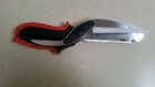 This is a BRAND NEW PAIR OF KITCHEN SCISSORS. It has a VEGETABLE PEELER, BOTTLE OPENER, FISH SCALER, CHOPPER, CUTTING BOARD & POULTRY BONE CUTTER. The saw tooth on the lower jaw cuts through bone easily. These orange & black kitchen shears have a locking handle & a non-slip grip. This multi purpose tool would take up little space in your kitchen drawer & get the work done of a lot of other utensils.