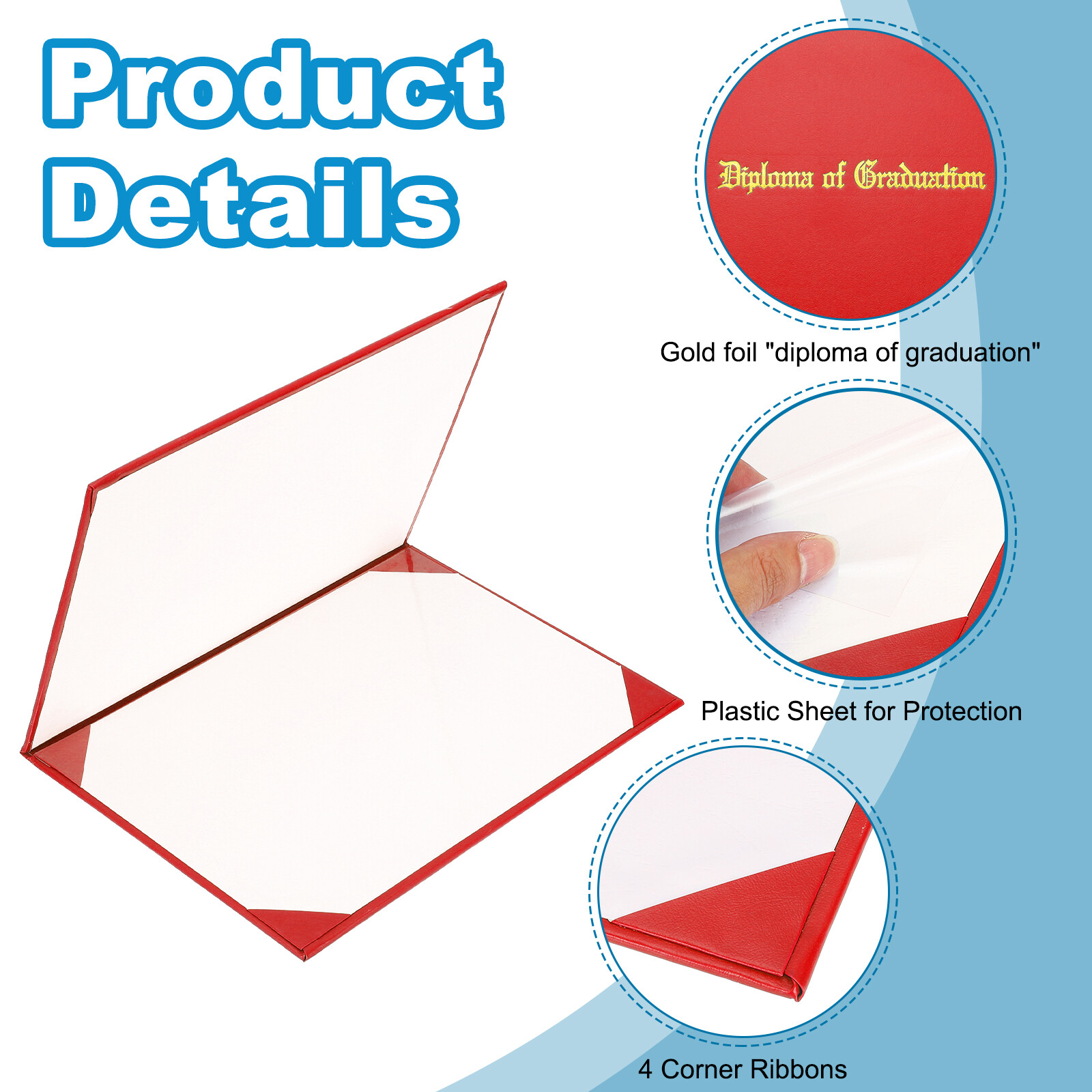 Document These certificate cover holders are suitable for your graduation certificate, diploma certificates, award recognition, important documents, and so on. Also good graduation gifts for your friends, and the younger generation in the family.Specification:Color: Red;Material: PU Leather, Paper;Outer Covering Size: 310 x 220 x 10mm / 12.2 x 8.66 x 0.39 inch(L*W*H);Applicable Size: 8.5 x 11 inch;Packing List: 6 Pcs x Certificate Cover HoldersAdvantage:Made of high-grade artificial leather, which is hard and smooth to the touch. It is dirt resistant, wear-resistant, and waterproof;Printed in gold foil "diploma of graduation" letter is on the padded front cover. Textured faux leather is elegant;Good for storing, protecting, and displaying your diploma, documents, etc, widely used on Graduation Day, Employee Appreciation Day, Award, and so on;Instruction:The interior comes with a clear sheet to prevent damage to the certificate, 4 corner ribbons hold the certificate in placeNOTE: Please confirm the size before purchasing, because of the light and displays are different, the color will have some differences Certificate Cover Holders, 6pcs Fits 8.5x11" Paper, Red These certificate cover holders are suitable for your graduation certificate, diploma certificates, award recognition, important documents, and so on. Also good graduation gifts for your friends, and the younger generation in the family. Specification: Color: Red; Material: PU Leather, Paper; Outer Covering Size: 310 x 220 x 10mm / 12.2 x 8.66 x 0.39 inch(L*W*H); Applicable Size: 8.5 x 11 inch; Packing List: 6 Pcs x Certificate Cover Holders Advantage: Made of high-grade artificial leather, which is hard and smooth to the touch. It is dirt resistant, wear-resistant, and waterproof; Printed in gold foil "diploma of graduation" letter is on the padded front cover. Textured faux leather is elegant; Good for storing, protecting, and displaying your diploma, documents, etc, widely used on Graduation Day, Employee Appreciation Day, Award, and so on; Instruction: The interior comes with a clear sheet to prevent damage to the certificate, 4 corner ribbons hold the certificate in place NOTE: Please confirm the size before purchasing, because of the light and displays are different, the color will have some differences Hot Item Payment 1.We accept eBay payment . 2.Payment must be received within 7 business days of auction closing. Shipping 1.We ship to your eBay or Paypal address. Please make sure your eBay and Paypal address is correct before you pay. 2.Items will be shipped within 1-3 business day when we received payment. 3.Delivery time depends on destination and other factors. Description Policy Certificate Cover Holders, 6pcs Fits 8.5x11" Paper, Red These certificate cover holders are suitable for your graduation certificate, diploma certificates, award recognition, important documents, and so on. Also good graduation gifts for your friends, and the younger generation in the family. Specification: Color: Red; Material: PU Leather, Paper; Outer Covering Size: 310 x 220 x 10mm / 12.2 x 8.66 x 0.39 inch(L*W*H); Applicable Size: 8.5 x 11 inch; Packing List: 6 Pcs x Certificate Cover Holders Advantage: Made of high-grade artificial leather, which is hard and smooth to the touch. It is dirt resistant, wear-resistant, and waterproof; Printed in gold foil "diploma of graduation" letter is on the padded front cover. Textured faux leather is elegant; Good for storing, protecting, and displaying your diploma, documents, etc, widely used on Graduation Day, Employee Appreciation Day, Award, and so on; Instruction: The interior comes with a clear sheet to prevent damage to the certificate, 4 corner ribbons hold the certificate in place NOTE: Please confirm the size before purchasing, because of the light and displays are different, the color will have some differences Hot Item Payment 1.We accept eBay payment . 2.Payment must be received within 7 business days of auction closing. Shipping 1.We ship to your eBay or Paypal address. Please make sure your eBay and Paypal address is correct before you pay. 2.Items will be shipped within 1-3 business day when we received payment. 3.Delivery time depends on destination and other factors.