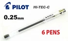 6x Pilot Hi-Tec-C Roller Ball Gel Pens Buyer receives 6 pens. Great pens with great ink!! 0.25mm in 3 colors - black, blue and red. The fine tipped point of Pilot Hi-Tec C pens allow you to write with incredible precision. Moreover the ink is chemically formulated so that it will not bleed after it dries. Newly developed ink prevents feathering and provides the smoothest writing every time. Gel Ink Pen that allows extremely micro fine and ultra fine writing. Also available in 0.3 and 0.4 mm. Lovely, Beautiful, Cute and Practical! Great items for yourself or as gifts! Smooth and fine writing with beautiful colors! Great pens for your work or study ! If you have any special request, just send a message! Airmail delivery from Taiwan to Worldwide For delivery estimate to your country, please see below.