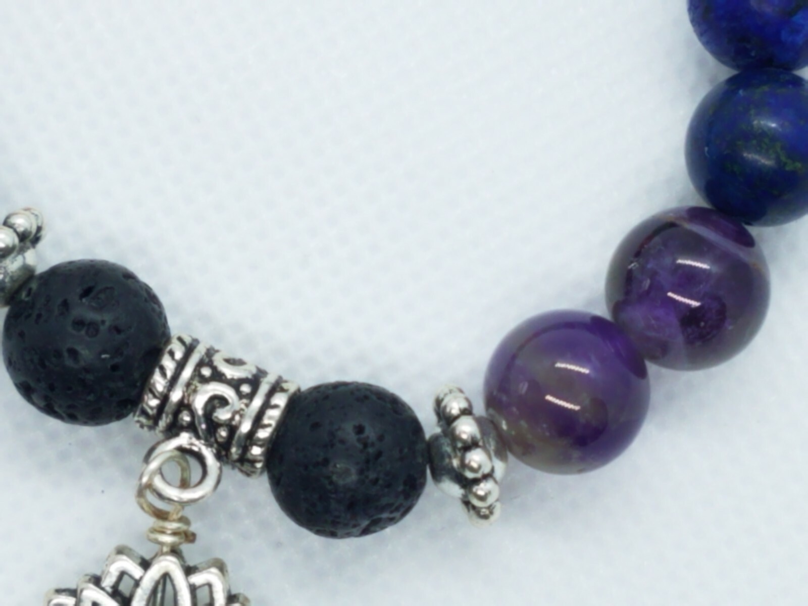 Welcome to Beaded Delight Jewelry Here you will find artisan designed and individually handcrafted jewelry and accessories. Each piece is unique providing the owner a One of a Kind (OOAK) style. Explore my store to find the perfect gift for that special someone or for yourself. Gemstone Bead Chakra Metaphysical Healing Bracelet Yoga Bracelet Created just for you is a semi-precious gemstone 7 Chakra metaphysical healing bracelet in stretch cord to fit any size wrist. 10mm round gemstones included in the Chadra are: Garnet - Root Chakra - feeling of safety and security Tiger Eye - Sacral Chakra - sexual energy and creativity Fire Agate - Solar Plexus Chakra - self-esteem and power Adventurine - Heart Chakra - love and the endocrine system Sodalite - Throat Chakra - speak inner truth Lapis Lazuli - Third Eye Chakra - intution Amethyst - Crown Chakra - enlightment Two of each type of gemstone beads are placed together in the above order. The center focus has a Tibetan silver textured charm slide with a Tibetan silver Lotus flower charm. One each side of the charm slide is a black lava bead. A drop of essential oil will slide into the crevices of each lava bead for all day aroma therapy. Each bracelet is approximately 7 inches in diameter without stretch and will fit the average wrist with some movement on the arm. I use strong elastic cord, however to prevent the cord from stretching out over time roll the bracelet over your hand to the wrist rather than stretch the cord over the hand. I have created 7 of these bracelets. Great for gift giving to special friends who need support and healing. There is a discount for purchasing multiple bracelets and a shipping reduction will be applied. Check out my other Chakra metaphysical healing bracelets in my Ebay store.