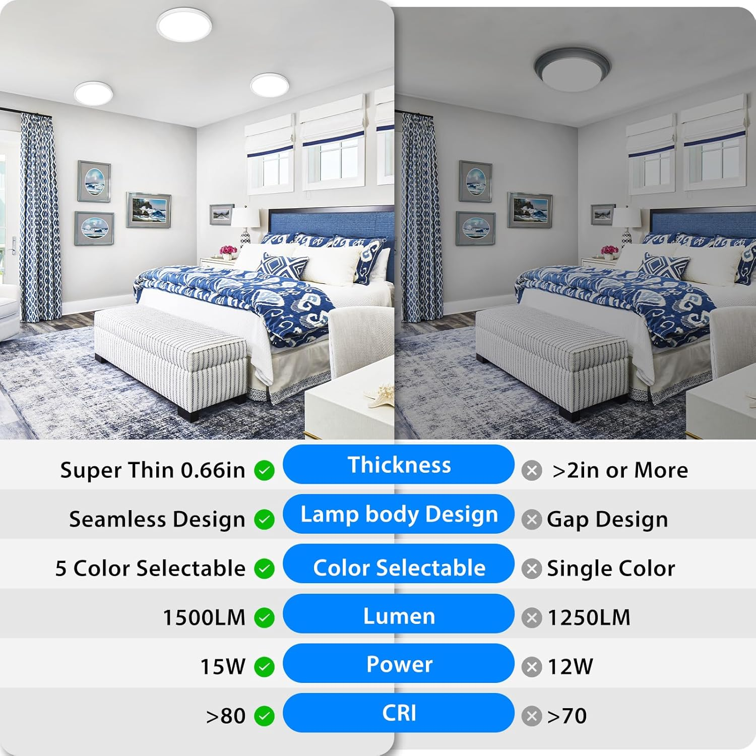 Store New Arrivals Add to Favorite View Feedback 7 Inch LED Ceiling Light, 3000K/3500K/4000K/5000K/6500K Adjustable Flush Mount Light Fixture,1500Lm 15W Thin White round Lamp for Hallway Kitchen Bathroom Bedroom Description Item model number CL61A-WT Light Source Type LED Style Modern Number of Items 1 Power Source AC Number of Light Sources 1 Control Method Touch Warranty Type Extended,360 Days Warranty Batteries Included? No Lighting Method Downlight Indoor/Outdoor Usage Indoor Unit Count 1.0 Count Room Type Bathroom, Bedroom, Home, Kitchen, living room, hallway, lounge, toilet, office, basement, utility room, cloakroom, stairs Assembly Required Yes Installation Type Flush Mount Product Dimensions 7"L x 7"W x 0.66"H Material Acrylonitrile, Butadiene, Metal, Plastic, Styrene Efficiency Highly Efficient Switch Type Push Button Finish Type Painted Specific Uses For Product Bedroom,living room, dinning room, kitchen, bathroom,home. office,Balcony Bulb Features 5 Color Temperature Fixture Type Non Removable Brightness 1500 Lumen Light Color Warm/Natural/Cold Water Resistance Level Water Resistant Batteries Required? No Item Weight 9.7 ounces Light fixture form Close to Ceiling Special Features 3000K/3500K/4000K/5000K/6500K, Adjustable Color Temperature, Corded, Water Resistant Special Feature 3000K/3500K/4000K/5000K/6500K, Adjustable Color Temperature, Corded, Water Resistant Bulb Base E26 Shade Color White Mounting Type Flush Mount Color White Wattage 15 watts Shape Round Voltage 120 Volts Recommended Uses For Product Retail Shade Material Plastic Finish types Painted Included Components Mounting Hardware, Shade Size 7IN-1 Pack Super Bright and Energy Efficient: Delivers 1500LM (15W) brightness, equivalent to a 150W traditional bulb.Saves up to 90% on electricity compared to traditional bulbs.Ideal for homes, businesses,like closets,pantry,stairwells,corridors,entrances,porches,wet rooms,bars,cafes,garage,offices,hotels,restaurants Wide Range of 5 Color Options: Choose from 5 different color temperatures to set the perfect mood.Enjoy greater flexibility than single or 3-color lights.Bright daylight (5000K) for work or living areas, cozy warm white (3000K) for a comfortable dining room High CRI & Eye-caring: With an impressive CRI of 85+, this round surface mount light fixture ensures that colors appear true-to-life and vibrant. Equipped with high-quality 2835 LED chips,it delivers stable,uniform,flicker-free light,significantly reducing eye strain and promoting comfortable viewing Modern Sleek Style & Space-Saving: This ultra-thin (0.66-inch) ceiling mount light powered by 110/120 voltage blends seamlessly with any flat ceiling.Low profile design is ideal for rooms with limited ceiling height.The compact and modern design adds a touch of contemporary elegance to any space Safe & Long-lifespan: Made with fire-resistant plastic and a non-toxic acrylic lampshade for safe, long-lasting performance and even light distribution. Dustproof and moisture-resistant for easy cleaning. Enjoy up to 3 years of reliable illumination with normal 8-hour daily use Easy Installation & Worry-Free Purchase: Our ceiling flushmount lighting is designed for quick and easy setup, eliminating the confusion of tedious installation steps. With a rotating mounting plate on the base, you can complete the installation effortlessly and efficiently. Enjoy the simplicity and convenience of upgrading your space Product description 1 High CRI 80+ 2 Eye Protection 3 Energy Saving 4 Waterproof & Dustproof ABOUT US We offer the best prices around on high quality products. Our E-store includes media such as books, movies, music and games while offering electronics, toys, sporting apparel, clothing, tools, general home, garden items and more. SHIPPING We are always working hard to ensure your package arrives as soon as possible. Please understand that some factors like weather, high postal traffic, and the performance of shipping companies are outside of our control. We offer free shipping to the lower 48 states and ship within 2 business days of payment, usually sooner. We do not accept P.O. Boxes. Please provide a physical address. RETURNS We offer a 30-Day Return Policy on items which you are not completely satisfied with. You have the option for a full-refund or an exchange of the item. No returns are available on items shipped outside of the USA. PAYMENT We accept PayPal. CONTACT US This page content is yet to come Please ad us to your favorite seller and visit again later Thank You