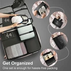 New Way:Do you love to travel? Are you tired of fumbling inside your luggage and unpacking everything to look for an item the same old way? Concerned you will leave expensive items in the hotel? Use our packing cubes set to sort, organize and find your things in a flash. Say goodbye to all your travel woes Unleash Your Creativity:Carry on the packing cubes to turn over-stuffed suitcase into neatly organized space, try your combo with different bag sizes or colors for your next trip - Long trip abroad, business travel, family camping or outdoor get-together is easier than ever Comfortable Texture:Our packing cubes set use Cationic fabric that can protect your clothes from wrinkles and stains.Waterproof, sturdy and recyclable. Protects your clothes from spillage or leakage, an excellent travel accessory to keep your luggage tidy Save Space:Compression design helps remove the extra air out, and saves 50% storage space after compressing. These compression bags for travel keep your clothing items organized and easy to access during travel, you don't need to search through your entire suitcase to find what you need Travel More Easy:Comes with 7 different sizes of travel compression cubes for different kinds of clothes.Top visible mesh design, transparent & breathable, can save time to find clothes, with fixed buckles in the inner of packing cube to keep your clothes clean and neat