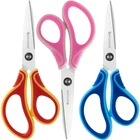 7-Inch Scissors/Student Scissors Set of 3-pack. 7- inch universal scissors are ideal for . They are ideal for use in the classroom, home or office. Easily cutting through layers of paper, scrapbooking, album, foam and poster board. Pointed tip blades offer improved cutting precision. Durable stainless steel blades feature a lasting sharp edge. They are designed for right or left-handed users. Larger finger loop and an ergonomic thumb loop provide a natural, more comfortable fit for growing hands. 【Multipurpose】: The 7-Inch Scissors/Student Scissors Set of 3-pack Scissors are perfect for older working on more advanced classroom projects;They are ideal for use in the classroom, home or office. Easily cutting through layers of paper, scrapbooking, album, foam and poster board. 【Precision art supplies for 】:.The 7-Inch Scissors/Student Scissors Set of 3-pack Scissors made of extra strong, durable, anti-rust and wear-resistant stainless steel flat-ground blades. Smooth pointed tip blades offer good performance for precision cutting paper. 【Comfortable and convenient】: Larger finger loop and ergonomic thumb loop help provide a natural fit for fingers; Handles are specially designed for older . 【Includes】: 3-pair 7" Student Scissors All Purpose.There are three cute colors:Red Yellow/Pink/Blue. 【】: Every Product is independently tested and selected to ensure the performance you expect.Full .Your satisfaction is our greatest support.