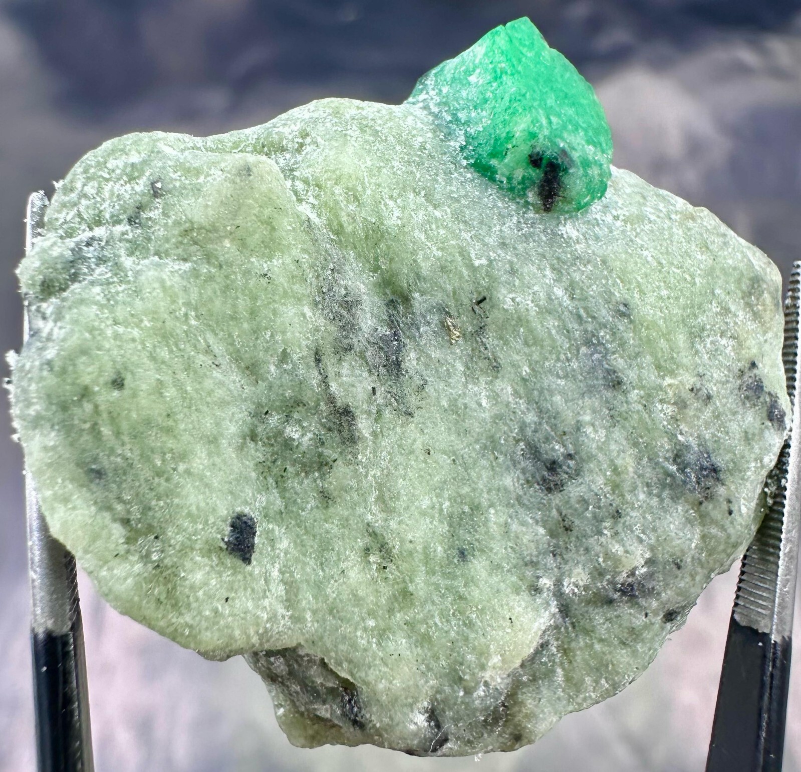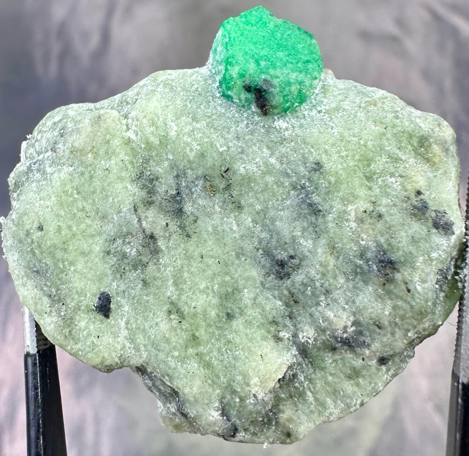 This 70.55 ct natural emerald in matrix is a remarkable collector’s specimen, featuring a striking green emerald crystal embedded in its natural host rock. Its impressive size and natural formation make it a standout piece for any gemstone collection. • Weight: 70.55 carats • Dimensions: 33.5 x 32.5 x 8 mm • Color: Vivid green emerald in matrix • Origin: Natural formation • Condition: Untreated, unpolished, and in its raw state