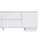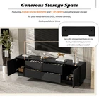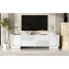 70.8'' Modern TV Stand for 75 Inch TVs - White MDF Entertainment Center with Storage Cabinets, 4 Drawers & Metal Center Leg Elevate your living room with this sleek, minimalist TV stand—perfect for blending style and functionality! Designed to support TVs up to 75 inches, this 70.8-inch entertainment center features high-quality MDF construction, ample storage (2 cabinets + 4 drawers), and thoughtful details like cable management and an anti-tip device. The clean white finish and straight lines seamlessly complement contemporary decor, making it an ideal addition to living rooms, media rooms, or home offices. Sleek Minimalist Design for Contemporary Spaces : With its clean, streamlined lines and pure white finish, this TV stand creates a clutter-free, sophisticated look that fits effortlessly into any modern home. It adds a touch of elegance without overwhelming your space, serving as both a functional media console and a stylish decor piece that enhances your interior aesthetic. Durable MDF Construction for Reliable Support : Crafted from high-quality MDF, this TV unit is built to last—offering long-lasting sturdiness and stability. It boasts a 110 lbs top weight capacity, easily supporting large televisions up to 75 inches. The dried wood material and solid construction ensure it withstands daily use, making it a reliable choice for residential spaces. Ample Storage Space for Clutter-Free Living : Equipped with 2 spacious cabinets and 4 drawers, this TV stand provides abundant storage for all your media essentials. Use the cabinets to store media devices, DVDs, or larger items, while the drawers (each with a 30 lbs weight capacity) keep remote controls, cables, books, or decorative accents organized. Each cabinet also supports up to 50 lbs, offering flexible storage options for your home. Built-In Cable Management for Tidy Setup : Keep your space neat and organized with two cable management holes on the back panel. These holes let you neatly route and hide TV, speaker, or gaming console cables, preventing clutter and maintaining a clean, streamlined look for your media setup. Sturdy Support System with Metal Center Leg : The TV stand rests on two square wooden legs paired with a central metal support leg—combining aesthetic appeal with maximum stability. This design ensures the unit remains secure even when supporting heavy televisions, eliminating wobbling and enhancing overall durability. Enhanced Safety with Anti-Tip Device : For added peace of mind, this TV stand includes an anti-tip device that prevents tipping, making it a safe storage solution for homes with kids or pets. You can confidently place your TV and valuables on the stand without worrying about accidental instability. Detailed Product Specifications : - Product Type: Modern TV Stand / Entertainment Center; - Color: White; - Materials: MDF + Metal (Leg); - Overall Dimensions: 70.8''W × 15.7''D × 20.3''H; - Floor-to-Bottom Clearance: 3.5''; - Top Weight Capacity: 110 lbs; - Each Drawer Weight Capacity: 30 lbs; - Each Cabinet Weight Capacity: 50 lbs; - Maximum TV Screen Size Accommodated: 75 inches; - Product Weight: 80.14 LBS; - Package Dimensions: 76.97''L × 18.98''W × 5.91''H; - Package Weight: 95.68 LBS; - Key Features: Minimalist Design, Cable Management Holes, Anti-Tip Device, 2 Storage Cabinets, 4 Drawers, Metal Center Leg, Scratch & Stain Resistant Surface; - Suitable For: Living Rooms, Media Rooms, Home Offices, Residential Spaces; - Included: 1 × TV Stand, All Necessary Hardware & Fasteners, Assembly Manual. Assembly Information : Full assembly is required, and we suggest 2-3 people for efficient and safe setup. All components are pre-drilled and pre-cut, and the package includes a detailed step-by-step assembly manual—making the process straightforward even without professional skills. Care & Important Notes : - Maintenance: To protect the finish, avoid abrasives or household cleaners; dust with a soft dry cloth. Always use coasters, pads, or felt to protect the surface, and wipe up spills immediately. - Color Disclaimer: Chromatic aberration may occur due to lighting differences; actual product color may vary slightly from images. - Size Disclaimer: Hand measurement may result in minor deviations (about 0.8-1.2 inches); please refer to the actual product for precise dimensions. - Support: If you receive a damaged item, missing parts, or defects, feel free to contact us for assistance. Worry-Free Purchase Guarantee : We stand behind the quality of this modern TV stand with a 1-Year Warranty. If you’re not completely satisfied with your purchase for any reason, we offer a 30-Day Free Return & Exchange Policy. Shop with confidence, knowing you’re getting a stylish, durable, and functional media solution that enhances your home’s organization and aesthetic!