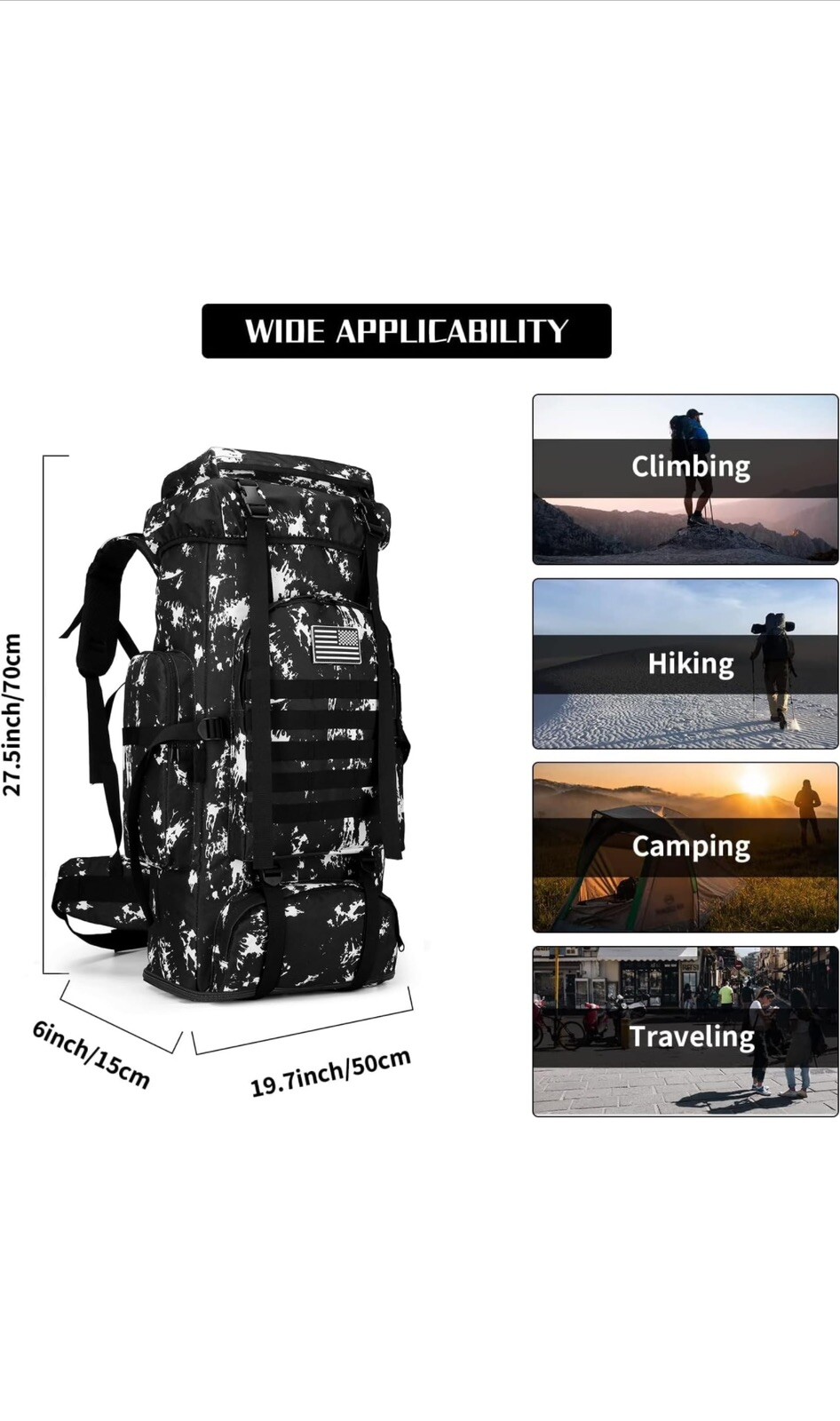 Hiking Backpack for Men 70L/100L Camping Backpack Military Rucksack Molle 3 Days Assault Pack for Climbing