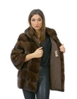 $ 1072.7848-inch horizontal mink fur jacket with brown hood, 62 cm length and external pockets