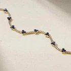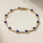 This elegant tennis bracelet features a 7.19 Ct round cut simulated sapphire set in 925 sterling silver. The bracelet has an adjustable length of 7.5 inches and features a push lock closure. The main stone is a vivid blue color and is accented with simulated diamonds. The design is classic and timeless, making it suitable for occasions like engagements, weddings, anniversaries, birthdays, and more. Personalization is available, and the bracelet is handmade with excellent craftsmanship. Perfect for adding a touch of glamour to any outfit.