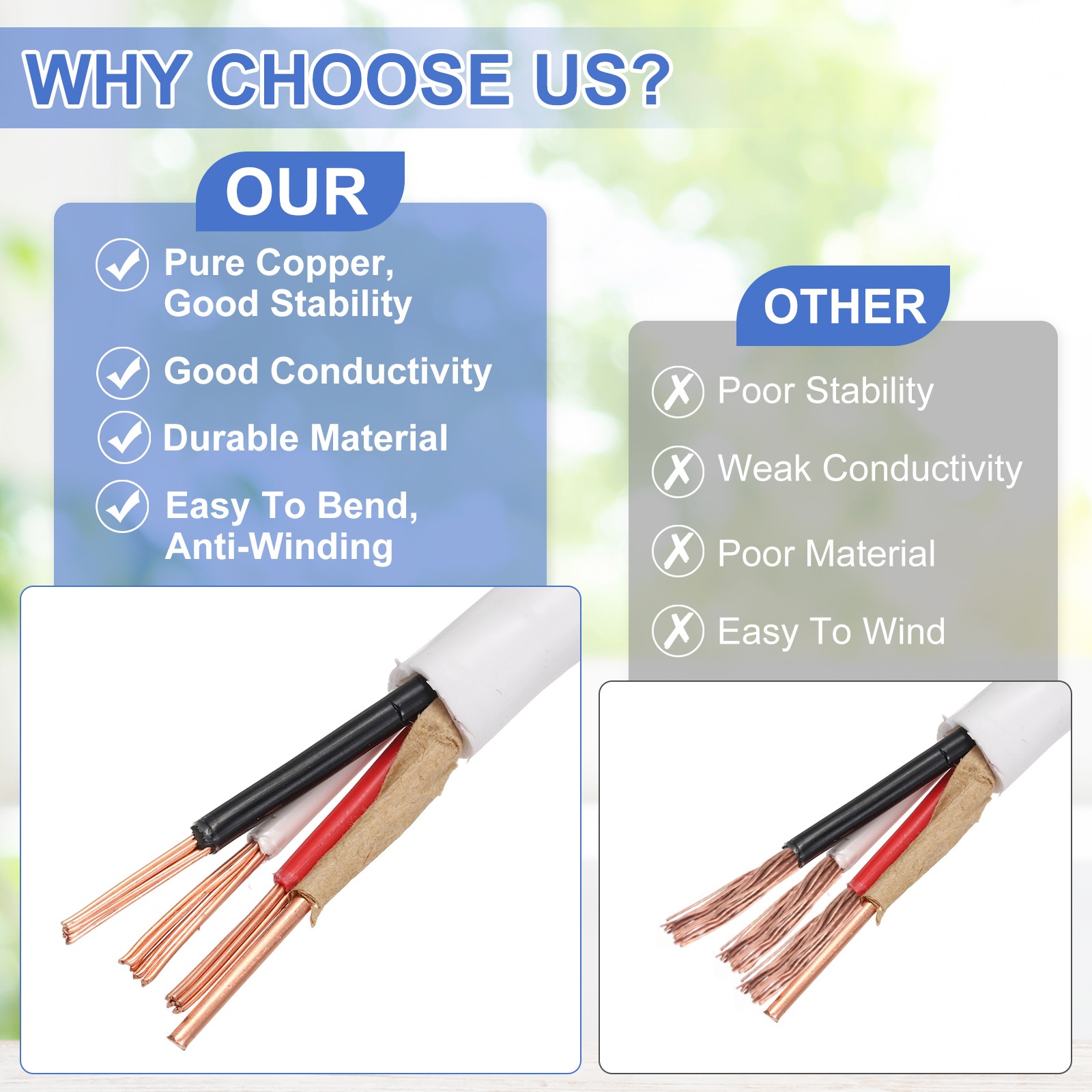 Document What is this?These pure copper wires have a wide range of applications and are commonly used in residential, home, and commercial wiring, sockets, switches, lighting, garage installation, air conditioning systems, and indoor wiring and other loads or electrical equipment in residential buildings.What will I get?Material: CopperColor: WhiteLength: 75Ft3 Conductor Size: 14AWGGround Wire Size: 14AWGRated Voltage: 600VRated Working Temperature: 90℃Package Contents: 1Pcs x 14/3 NM-B Wire with GroundIs there any advantages of the product?This UL-listed nm-b wire is made of copper material, with good conductivity, cold and high temperature resistance, corrosion resistance, and impact resistance, and can be used for a long time. The nylon sheath insulation and flame-retardant grounding paper wrapped around the wire core improve safety, and the outer sheath of the wire is made of wear-resistant PVC material to ensure safety and reliability. The length is sufficient and suitable for projects that do not require frequent splicing.How to use it?Installed in a dry environment, these pure copper cables have a certain flexibility, are easy to bend, and are not easy to tangle. The outer PVC sheath is easy to pull off, peel off, and install easily.What should I notice?These nm-b electrical wires are available in a variety of specifications. Please pay attention to the size information of the product before purchasing. The size is measured manually, and please allow for some measurement errors. 75Ft 14AWG 600V UL-Listed 14/3 NM-B Wire with Ground 3 Conductor (White) What is this? These pure copper wires have a wide range of applications and are commonly used in residential, home, and commercial wiring, sockets, switches, lighting, garage installation, air conditioning systems, and indoor wiring and other loads or electrical equipment in residential buildings. What will I get? Material: Copper Color: White Length: 75Ft 3 Conductor Size: 14AWG Ground Wire Size: 14AWG Rated Voltage: 600V Rated Working Temperature: 90℃ Package Contents: 1Pcs x 14/3 NM-B Wire with Ground Is there any advantages of the product? This UL-listed nm-b wire is made of copper material, with good conductivity, cold and high temperature resistance, corrosion resistance, and impact resistance, and can be used for a long time. The nylon sheath insulation and flame-retardant grounding paper wrapped around the wire core improve safety, and the outer sheath of the wire is made of wear-resistant PVC material to ensure safety and reliability. The length is sufficient and suitable for projects that do not require frequent splicing. How to use it? Installed in a dry environment, these pure copper cables have a certain flexibility, are easy to bend, and are not easy to tangle. The outer PVC sheath is easy to pull off, peel off, and install easily. What should I notice? These nm-b electrical wires are available in a variety of specifications. Please pay attention to the size information of the product before purchasing. The size is measured manually, and please allow for some measurement errors. Hot Item Payment 1.We accept eBay payment . 2.Payment must be received within 7 business days of auction closing. Shipping 1.We ship to your eBay or Paypal address. Please make sure your eBay and Paypal address is correct before you pay. 2.Items will be shipped within 1-3 business day when we received payment. 3.Delivery time depends on destination and other factors. Description Policy 75Ft 14AWG 600V UL-Listed 14/3 NM-B Wire with Ground 3 Conductor (White) What is this? These pure copper wires have a wide range of applications and are commonly used in residential, home, and commercial wiring, sockets, switches, lighting, garage installation, air conditioning systems, and indoor wiring and other loads or electrical equipment in residential buildings. What will I get? Material: Copper Color: White Length: 75Ft 3 Conductor Size: 14AWG Ground Wire Size: 14AWG Rated Voltage: 600V Rated Working Temperature: 90℃ Package Contents: 1Pcs x 14/3 NM-B Wire with Ground Is there any advantages of the product? This UL-listed nm-b wire is made of copper material, with good conductivity, cold and high temperature resistance, corrosion resistance, and impact resistance, and can be used for a long time. The nylon sheath insulation and flame-retardant grounding paper wrapped around the wire core improve safety, and the outer sheath of the wire is made of wear-resistant PVC material to ensure safety and reliability. The length is sufficient and suitable for projects that do not require frequent splicing. How to use it? Installed in a dry environment, these pure copper cables have a certain flexibility, are easy to bend, and are not easy to tangle. The outer PVC sheath is easy to pull off, peel off, and install easily. What should I notice? These nm-b electrical wires are available in a variety of specifications. Please pay attention to the size information of the product before purchasing. The size is measured manually, and please allow for some measurement errors. Hot Item Payment 1.We accept eBay payment . 2.Payment must be received within 7 business days of auction closing. Shipping 1.We ship to your eBay or Paypal address. Please make sure your eBay and Paypal address is correct before you pay. 2.Items will be shipped within 1-3 business day when we received payment. 3.Delivery time depends on destination and other factors.