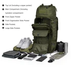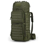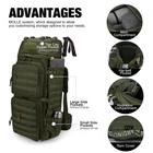 Material:This 75L backpacking backpack is made of 600D Polyester,YKK Zipper,Rain cover included Hydration Compartment:This hiking backpack with hydration compartment and can hold a 3 Liter bladder , the tube is fed through the top side of the bag near grab handle MOLLE Webbing:This is a military tactical backpack that You can hang on tools,trekking poles,tents,sleeping bags,and other outdoor gear by the molle system,A rifle also can be hanged with the side strap and side pocket Side Pocket ,Quickly Access:This camping backpack with 2 side pockets,8"*8", and 2 bigger pockets ,7.5"*13.8",that can hold water bottle or camping、survival gear,The backpack has large zipped access at front that can quickly access to the main compartment, opend as a 15.6" luggage Durable,Multifunctional:This 75L molle backpack with chest straps to cope with the weight so that it's well used as a 3 day assault pack,bug out bag,survival backpack,army backpack,trekking backpack or day pack,Suits for hiking,hunting,trekking,camping,climbing,traveling