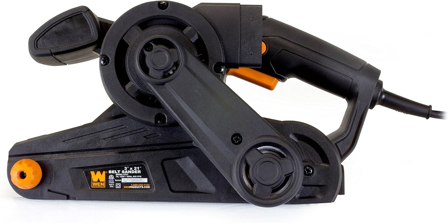 WEN 6321 7-Amp 3 in. x 21 in. Corded Belt Sander with Dust Bag , Black Style: 21-inch + Single Speed Brand WEN Product Dimensions 12"L x 6"W x 6.5"H Grit Type Coarse Voltage 2.3E+2 Volts (AC) Power Source Corded Electric About this item 7-amp motor rotates the belt at over 13 feet per second Compact design weighs in at a mere six pounds to limit the fatigue of the user Includes a detachable dust bag to minimize clean-up Lock-in safety feature allows for continuous sanding without requiring a constant grip on the trigger Backed by a two-year warranty and a nationwide network of skilled technicians