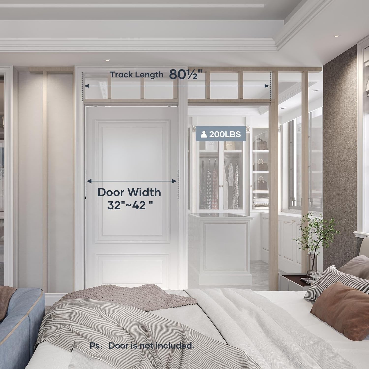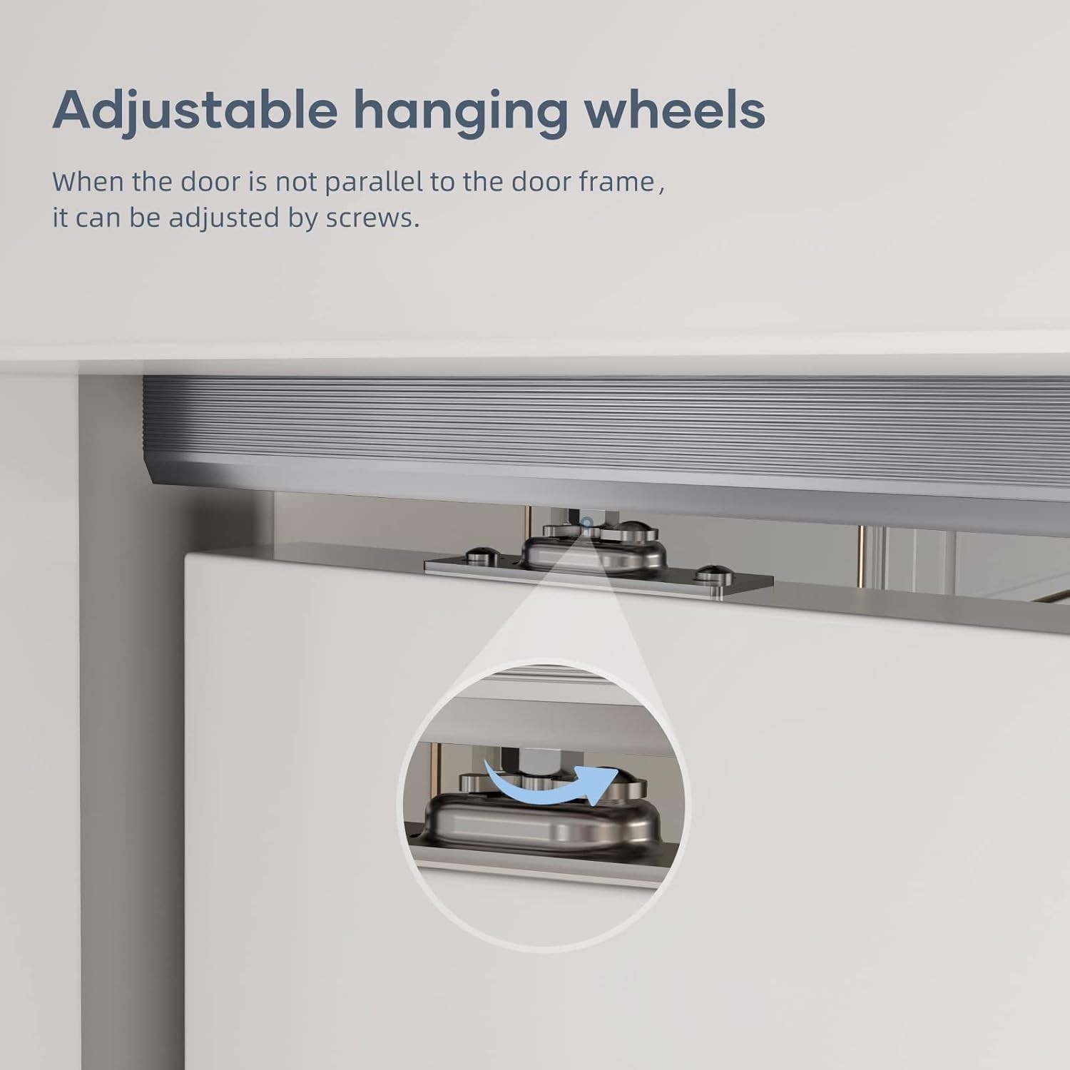 Your Best Choice: Finosen professional dedicated to the research of barn door and sliding barn door hardware for many years,we always insist on providing the best quality,the safest and the most cost-effective products. Excellent Quality: Pocket door hardware is made of high-quality aluminum material with premium nylon roller pulley,coated with silver surface,which ensure the features as corrosion,rust-resistant,durable.And maintains its beauty and longevity for many years.Roller is equipped with three wheels, which ensures good load-bearing and stability of the product. Package List: 2 x 40-3/8" track,2 x rollers,1 x bumper,1 x floor guide.All necessary parts are included.(DOOR IS NOT INCLUDED.) Product Advantage: Compared with traditional barn door hardware, top mount pocket door track is space saving and can be used in a variety of living situations, such as kitchen, study, etc. This pocket door hardware and track roller set fits door thickness from 1" to 1-3/4" and weigh up to 200 lbs. 24 Hours Stand By: The package contains all accessories and one copy of step-by-step installation manual.You can also get professional support within 24 hours from our service team.