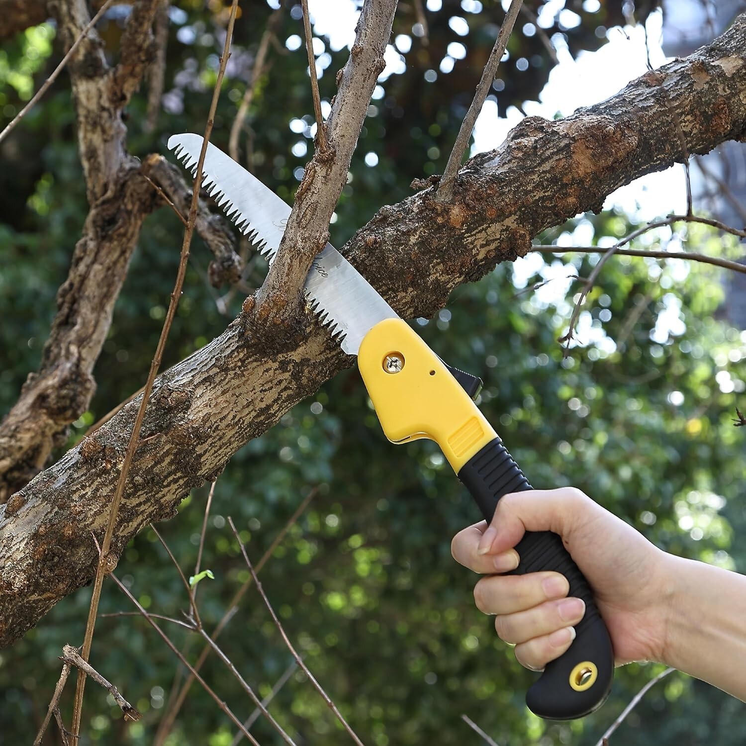 7-Inch Foldable Camp & Tree Saw About this item Bates pruning saw boasts a sharp, 7-inch blade, ideal for efficiently trimming branches, shrubs, and other vegetationup to 2" in diameter. Its durable blade ensures longevity, even with consistent use in demanding environments. The bright yellow handle, complemented by a black ergonomic grip, provides a secure hold, minimizing slips and enhancing user comfort. Designed for both professional gardeners and home enthusiasts, its precise cutting-edge reduces effort and enhances the pruning experience. With its blend of design and functionality, this saw is a must-have tool for anyone looking to achieve clean and precise cuts.