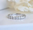 Description: Classic and elegant, this stack-able moissanite 7-stone band is the wedding band you are looking for! The ring features 7pcs 3mm brilliant round cut VVS1 D color moissanite stones shared prong set in high quality .925 sterling silver and finished with platinum plating . Total carat weight is approx. 0.77 carat diamond equivalent. Allergy-free. Tarnish resistant. Moissanite gemstones are a 9.25 on the Mohs Scale of Hardness, so they are suitable for everyday wear. Allergy-free. Tarnish resistant. Comes with GRA Moissanite Certificate. Pass diamond tester. VVS1, D Color, Excellent Cut. Ship beautiful gift boxed. Material: Moissanite stones. Solid .925 Sterling Silver; Stamped "925". Condition: Brand New SHIPMENT United States USPS First Class Mail or USPS Priority Mail PAYMENT Accept PayPal CUSTOMER SUPPORT 100% Satisfaction Guaranteed! If for some reason you are not happy with our product or service, you may contact us. We will try our best to solve problems for you. We urge you to contact us before leaving us a bad feedback. Please trust us that we can solve all kinds of problems for you.