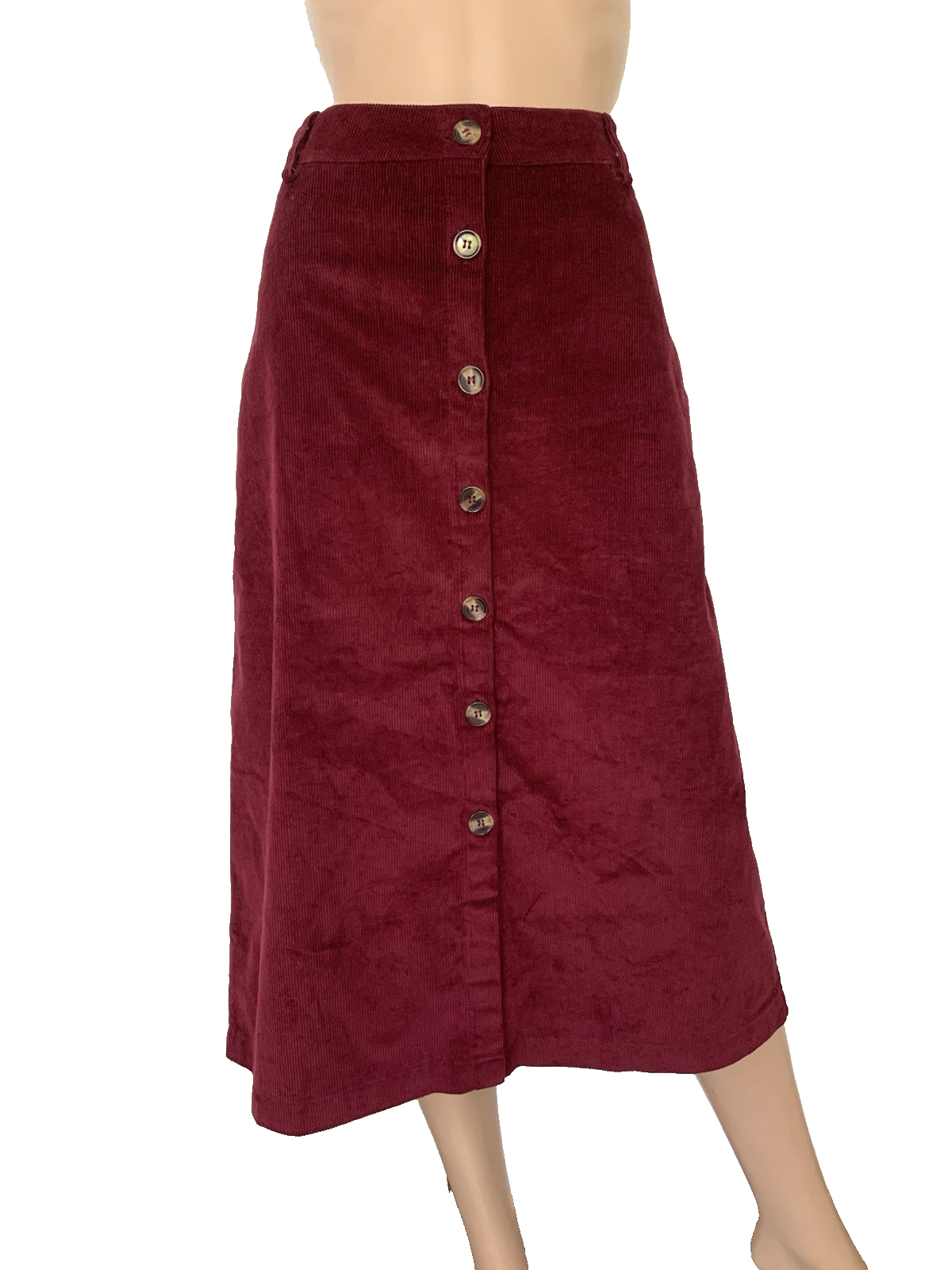 8 BY YOOX Gorgeous burgundy organic cotton blend corduroy midi skirt with button down front. Perfect for everyday wear. Immaculate design, quality and fit, as you would expect from 8 By Yoox. Midweight, slight stretch Button closure Pockets at side 97% organic cotton, 3% elastane Machine wash Size: UK 10, US 6, FR 38, IT 42 Waist 30 inches Length 31 inches Pinned and modelled on a UK 6/8 with 24 inch waist, 34 inch hips Brand new with tags. Sold out. Please check all photos for condition and fit, read the description and compare accurate measurements I have written above with your own before purchasing to ensure satisfaction as I do not offer refunds. Will be sent with tracking