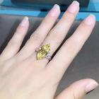 $ 689.236 Carat Canary Pear Cut Vivid Yellow VVS Three Stone 14K Gold Moissanite Ring