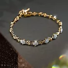 This stylish tennis bracelet features a flower-shaped design crafted from 925 sterling silver, adorned with 8 carats of round simulated diamonds. The bracelet has a push lock closure and an adjustable length of 7.5 inches. It is nickel-free and can be personalized as per the buyer's requirements, making it a perfect accessory for special occasions like engagements, weddings, birthdays, and more. The elegant piece is handmade and engraved, adding a touch of uniqueness to its beauty and charm.