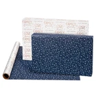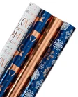Wrap up your holiday gift wrapping with this 4-pack of reversible wrapping paper rolls. Each roll can wrap about 7 average-sized shirt boxes, so you’ll have plenty of room to wrap gifts of any size. And since each roll features coordinating designs on either side of its heavyweight paper, it’s easy to give your tree display some festive variety. offers exceptional greeting cards, gift wrap and celebration products so you can connect in ways that fit your personality and authentic style! Includes 4 rolls of reversible wrapping paper Each roll measures 30 inches wide by 8 feet, 20 total square feet. 4 rolls measure 80 square feet total. Each roll can wrap approximately 4 shirt boxes that measure 14.75 inches x 9.5 inches x 1.88 inches. The 4 roll pack can wrap 28 shirt boxes! Made with heavyweight paper that’s recyclable and assembled in the USA These navy and rose gold Christmas wrapping paper rolls have a metallic foil finish and features festive designs including reindeer, snowflakes, Christmas trees, stripes, polka dots and lettering with warm holiday messages. These wrapping paper rolls are the perfect gift packaging option with coordinating designs will add variety and style to your holiday Christmas gift wrapping! Perfect for wrapping Christmas gifts for family and more!