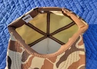 80s MARLIN FIREARMS Snap Back Camo Trucker Hat-Unworn-YA-(Rifle/Shotgun/Hunting) DIMENSIONS: Marked size: not marked for size. "One size fits all." Adjustable. Total weight: 2.75 ounces. DESCRIPTION: Vintage MARLIN FIREARMS trucker-style hat. Manufactured by YA / Young An Headwear. Camouflage and tan fabric crown and bill with snap back adjustment. Embroidered fabric patch: "MARLIN" with cowboy on horse. The entire crown is foam lined. Maker's marks: tagged "Quality Brand YA - 60% cotton 40% polyester - Poly foam laminated - Men's - One size fits all - Made in Korea"; "YA" trademark molded into snap back. 1980s I believe. Korea. CONDITION: This hat is in excellent unworn "as new" original condition. No damage or wear or any kind. Never worn. No tears, pulls, snags. Snap back is in excellent condition with no splits, cracks, breaks, losses. Very clean as found. No pet, cigarette or other unpleasant odors. No stains, discolorations, fading, soiling whatsoever. All of the foam laminate is presently in excellent intact condition with no disintegration but expect these elements to decompose with age and use.