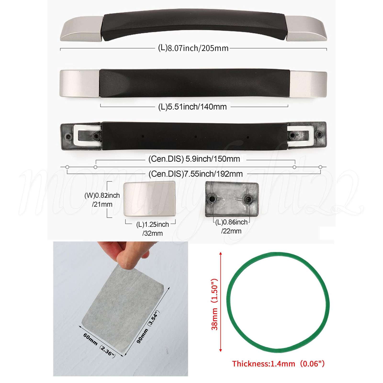 Features: 1.Every product has a unique Manufacturing Part Number label on the inner package that proves it has been qualified,which include Part Number,Model Number and inspection date information; 2.If you have any questions about the item,please provide us the Manufacturing Part Number for checking,your profits will be guaranteed. 3.Our luggage handle replacement is made of high-quality materials, not easy to deform, not easy to crack, and durable to use. 4.COMFORTABLE TO GRIP: The replacement luggage handle has a smooth surface to keep your hands safe! Appropriate handle radian makes you hold it more comfortably! 5.Easy to install and only takes two minutes to set up! very convenient! Replaceable design, wear-resistant, flexible handle, suitable for replacing broken luggage handles. 6.Oil Blotting Sheets: The package is compact and removable, easy to carry and use. 7.Small Rubber Bands: Strong elasticity, strong toughness, not easy to break after repeated stretching, and wear-resistant. Specifications: Material: Zinc Alloy & Plastic & Steel Sheet Color: Black & Silver Brand name: Unbranded Size: Overall length: 206mm/8.11" Handlebar length: 140mm/5.51" Inner hole distance: 150mm/5.9" Outer hole distance: 192mm/7.55" Metal mount size: 21x32mm/0.82"x1.25" (LxW) Hole spacing: 22mm/0.86" Weight: 135.5 g Package include: 1 x Suitcase Handle 2 x Metal Mounts 4 x Screw Gaskets 4 x Screw 10mm 4 x Screw 16mm 1 x Dual-Purpose Screwdriver (cross and slotted) 100 x Oil-Absorbing Sheets 20 x Rubber Bands On Jan 8, 2024 at 10:14:04 PST, seller added the following information: