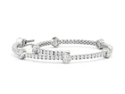 This elegant tennis bracelet features a total of 8.20 carats of heart-shaped simulated diamonds set in 925 sterling silver. The bracelet is 7.5 inches in length and has a push lock closure for secure wearing. It can be personalized as per the buyer's requirements and is handmade with excellent cut grade and eye-clean gemstone clarity. The design is charming and versatile, suitable for occasions like engagements, weddings, birthdays, and more. This stunning piece by the brand KJJ1000 is nickel-free, adjustable, and engraved, making it a special gift for a loved one or a beautiful addition to any jewelry collection.