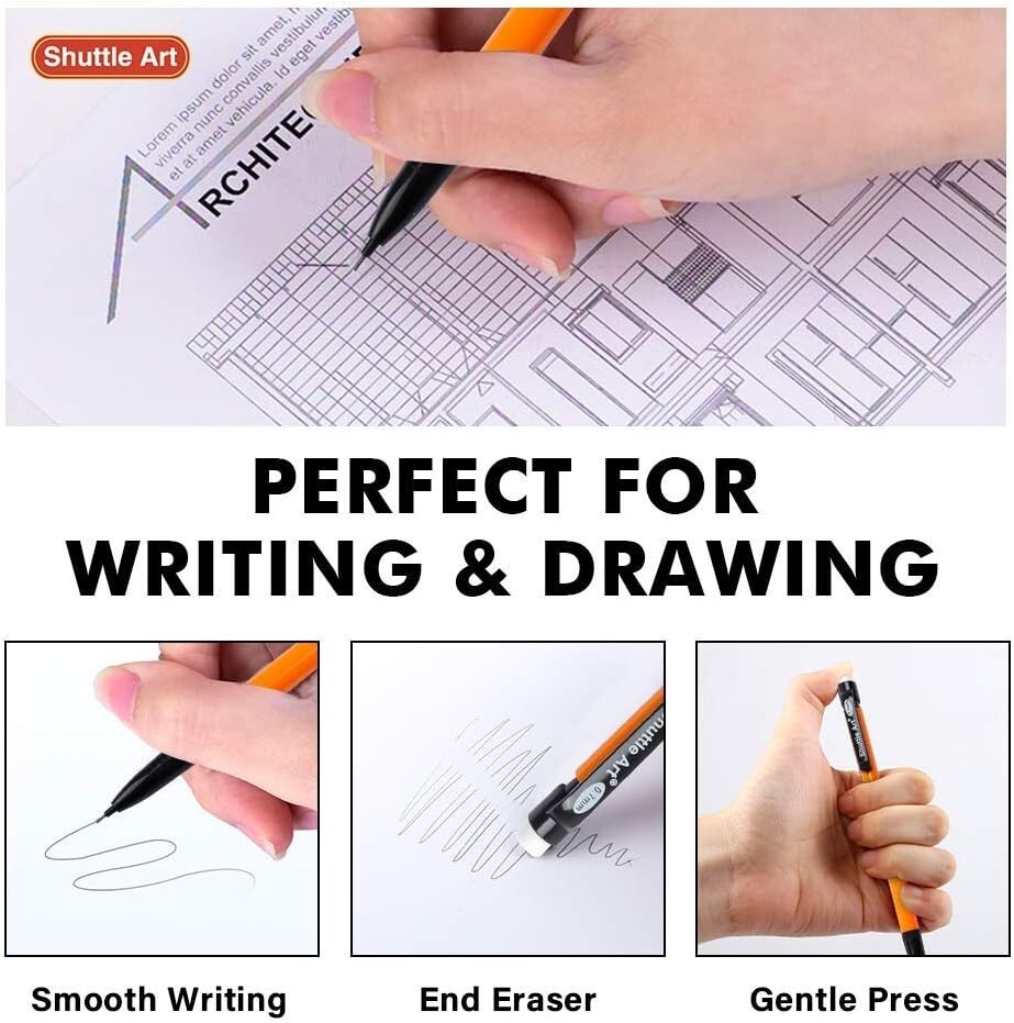 Bulk Mechanical Pencils 84 Pack 0.7mm HB #2 Assorted Colors for School Office Number of Items:84 Writing Instrument Form: Mechanical Graphite Pencil Color: Black Ink Color: Black Age Range (Description): Kids, Teens & Adults 84 PACK VALUE SET: Shuttle Art 0.7mm Mechanical Pencils bulk set comes with 84 pack HB #2 mechanical pencils in 6 different barrel colors (14 pack of each color), perfect for daily writing and drawing at home, school and office ALWAYS READY TO USE: Pre-loaded with pencil lead, you can start writing at any time without the trouble of sharpening, ideal for testing, sketching, writhing on notebooks, journals, papers, etc SMOOTH WRITING & BREAK RESISTANT: High quality pencil leads are sturdy enough for long time writing. They goes smoothly and clearly on papers without smudging or smearing, and are break resistant even you press hard, quite suitable for kids and students. Conforms to ASTM-D4236, non-toxic and acid-free, safe for kids and adults END ERASER COME IN HANDY : Each lead pencil comes with an end eraser on the click button, with gentle rub, you can erase pencil marks easily and cleanly, and it’s durable enough for normal use Return Policy: We offer a 30 day return policy from the receiving date. Please contact us for a Free Return Label. Please use our return label so it will go back to our supplier and we can do a refund or replacement afterwards. Feedback: Your satisfaction is very important to us! If you have any problem with your order, please contact us and we will do our very best to make you satisfied. As long as you are happy with your purchase, please leave a positive feedback for us. We will always leave you a positive feedback in return. If you have any problem with your purchase, please do not leave a negative feedback. Please Contact us ... and your issue will be solved quickly and positively We are a small family-owned business trying to make a living, not a huge company that does not care ... We will ALWAYS do our best for you!
