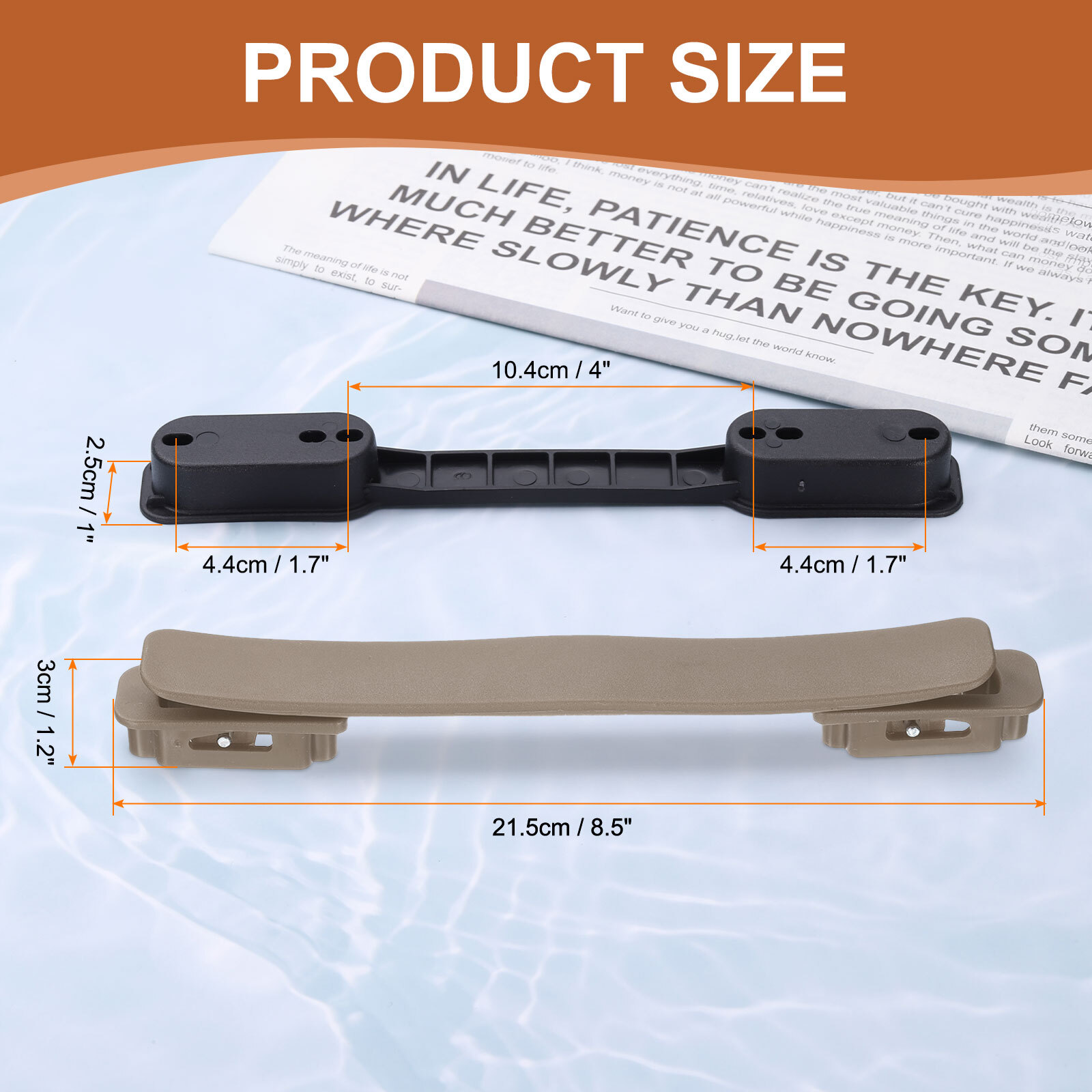 Document Description:Lightweight and Strong: The suitcase handle carry strap is made from durable plastic, which is lightweight yet strong enough to withstand the weight and stress of luggage, resistant to wear and tear, providing a comfortable grip and adequate leverage when lifting.Non-Slip Carry Strap Grip: The replacement luggage suitcase handle includes a comfortable carry strap grip for a secure hold and easy transportation, reducing the risk of slipping during use.Easy and Convenient: The plastic pull handle grip is designed for easy installation, aligning the handle with the pre-drilled screw holes on the suitcase, and securing it in place using the provided screws, ensuring the handle is firmly attached for stability.Luggage Replacement Parts: Great for replacing broken or damaged handles on suitcases, bags, briefcases, and other travel gear, this handle is a practical replacement part for restoring the functionality of your travel gear.Compatibility: Ensure that the handle is suitable for your luggage's design and screw-hole configuration before installation.Specification:Material: PlasticColor: BrownHandle Dimensions: 21.5 x 2.5 x 3 cm/8.5 x 1 x 1.2 inch (L*W *H)Base Inner Hole Distance: 10.4 cm/4 inchBase Hole Spacing: 4.4 cm/1.7 inchScrew Size: 12 x 4 mm (L*D)Package Contents:1 Pcs x Luggage Handle4 Pcs x Screws Luggage Handle Replacement with Screws 8.5 Inch Suitcase Handle, Brown Description: Lightweight and Strong: The suitcase handle carry strap is made from durable plastic, which is lightweight yet strong enough to withstand the weight and stress of luggage, resistant to wear and tear, providing a comfortable grip and adequate leverage when lifting. Non-Slip Carry Strap Grip: The replacement luggage suitcase handle includes a comfortable carry strap grip for a secure hold and easy transportation, reducing the risk of slipping during use. Easy and Convenient: The plastic pull handle grip is designed for easy installation, aligning the handle with the pre-drilled screw holes on the suitcase, and securing it in place using the provided screws, ensuring the handle is firmly attached for stability. Luggage Replacement Parts: Great for replacing broken or damaged handles on suitcases, bags, briefcases, and other travel gear, this handle is a practical replacement part for restoring the functionality of your travel gear. Compatibility: Ensure that the handle is suitable for your luggage's design and screw-hole configuration before installation. Specification: Material: Plastic Color: Brown Handle Dimensions: 21.5 x 2.5 x 3 cm/8.5 x 1 x 1.2 inch (L*W *H) Base Inner Hole Distance: 10.4 cm/4 inch Base Hole Spacing: 4.4 cm/1.7 inch Screw Size: 12 x 4 mm (L*D) Package Contents: 1 Pcs x Luggage Handle 4 Pcs x Screws Hot Item Payment 1.We accept eBay payment . 2.Payment must be received within 7 business days of auction closing. Shipping 1.We ship to your eBay or Paypal address. Please make sure your eBay and Paypal address is correct before you pay. 2.Items will be shipped within 1-3 business day when we received payment. 3.Delivery time depends on destination and other factors. Description Policy Luggage Handle Replacement with Screws 8.5 Inch Suitcase Handle, Brown Description: Lightweight and Strong: The suitcase handle carry strap is made from durable plastic, which is lightweight yet strong enough to withstand the weight and stress of luggage, resistant to wear and tear, providing a comfortable grip and adequate leverage when lifting. Non-Slip Carry Strap Grip: The replacement luggage suitcase handle includes a comfortable carry strap grip for a secure hold and easy transportation, reducing the risk of slipping during use. Easy and Convenient: The plastic pull handle grip is designed for easy installation, aligning the handle with the pre-drilled screw holes on the suitcase, and securing it in place using the provided screws, ensuring the handle is firmly attached for stability. Luggage Replacement Parts: Great for replacing broken or damaged handles on suitcases, bags, briefcases, and other travel gear, this handle is a practical replacement part for restoring the functionality of your travel gear. Compatibility: Ensure that the handle is suitable for your luggage's design and screw-hole configuration before installation. Specification: Material: Plastic Color: Brown Handle Dimensions: 21.5 x 2.5 x 3 cm/8.5 x 1 x 1.2 inch (L*W *H) Base Inner Hole Distance: 10.4 cm/4 inch Base Hole Spacing: 4.4 cm/1.7 inch Screw Size: 12 x 4 mm (L*D) Package Contents: 1 Pcs x Luggage Handle 4 Pcs x Screws Hot Item Payment 1.We accept eBay payment . 2.Payment must be received within 7 business days of auction closing. Shipping 1.We ship to your eBay or Paypal address. Please make sure your eBay and Paypal address is correct before you pay. 2.Items will be shipped within 1-3 business day when we received payment. 3.Delivery time depends on destination and other factors.