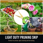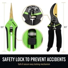 DUAL CUTTING POWER: VERSATILE PRUNING COMBO --- With both Pruning Shears and Pruning Snip, this combo delivers unmatched versatility. Whether you're delicately trimming flowers and shrubs, tackling thicker tree branches, or tending to your vegetable and fruit garden, our combo pack excels in all areas. They're also perfect for landscaping projects and maintaining the health and appearance of indoor plants. With this pack, you have a versatile tool that simplifies your gardening tasks. ULTRA SHARP --- Much less effort to cut branches with our combo pack. Our pruning shears are crafted from premium SK5 steel with a titanium coating, and the pruning snip features a stainless steel blade with a titanium coating. Our garden scissors and garden clippers boast exceptional durability and sharpness. A perfect pruning shears for gardening and a must-have garden tool, hedge clippers pruners for gardening. RUST PROOF TITANIUM COATED GARDENING SHEARS --- Our branch cutter tree pruner combo is built to last. SENIORS AND ARTHRITIS FRIENDLY --- Our pruners for gardening have comfortable handles that are easy to grip. With a non-slip texture for enhanced control, you can confidently prune in wet conditions. You can work longer without any hand fatigue. SAFETY LOCK PREVENTS ACCIDENTS --- Both of our pruning shears and pruning snips come with a built-in safety lock that securely holds the blades closed when not in use, preventing any accidental openings that could lead to injuries. This feature is designed for easy, one-handed activation, offering convenience and peace of mind whether you're storing the combo or carrying them in your pocket or toolkit. Trust in the safety and simplicity of our combo pack for all your gardening needs. PRECISION CUTTING --- Our Pruning Shears offer precise cutting with a 7.5 cm (2.95 inches) long blade and a 3.6 cm (1.42 inches) wide opening, making it easy to trim branches of different sizes. And the Pruning Snip's 2.1-inch long blade with a 1.3-inch wide opening allows for precise and detailed cuts, making it perfect for intricate pruning tasks and fine trimming. The titanium-coated bypass mechanism ensures clean and efficient cuts, keeping your plants healthy. EASY MAINTENANCE --- Maintaining our combo pack is a breeze, ensuring a hassle-free gardening experience. They are easy to clean, allowing you to swiftly remove debris and sap buildup, keeping them in top-notch condition. Crafted from rust-resistant materials, these shears and snips reduce the need for frequent maintenance and ensure long-lasting performance. With proper care, they maintain their sharpness, so you spend less time sharpening and more time tending to your garden. IDEAL GIFT --- Our combo pack is the most ideal gift for gardening enthusiasts. Thoughtful and practical, they show your appreciation for their green-thumb passion. With versatile functionality and durable, high-quality construction, this pack will be a lasting and cherished addition to their gardening toolkit. Make their day special with a gift that speaks to their love for gardening.