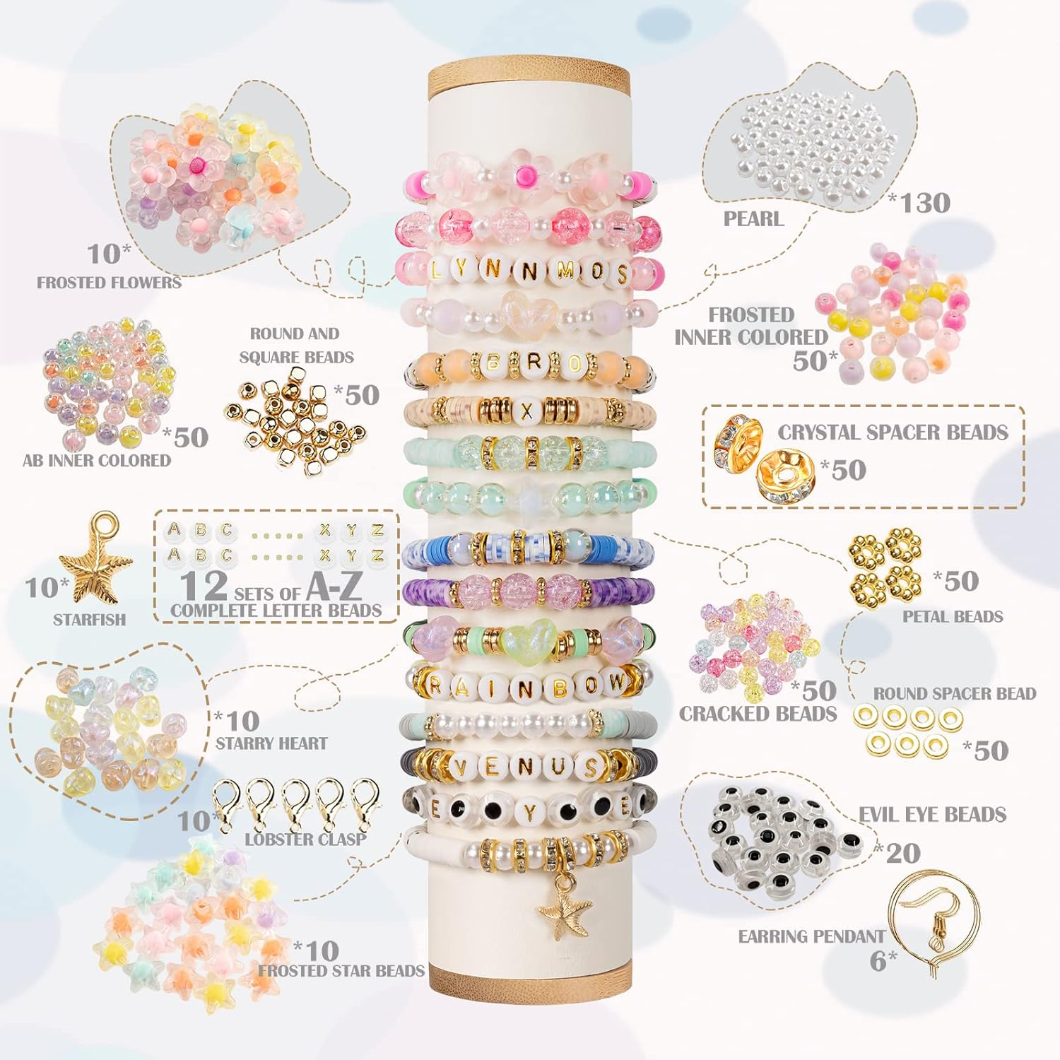 Menu Other Items Feedbacks About Us Contact Us Add To Favorites Clay Beads 8500 Pcs 2 Boxes Bracelet Making Kit - 24 Colors Polymer Clay Beads for Bracelet Making Set - Heishi Disc Beads for Jewelry Making Kit with Charms and Gift Pack for Girls 1. 【Fashionable and More】 : Our clay beads for bracelet making kit are made with this year's popular fashion elements, giving you more creativity and style in color matching. And 20% more than other beads, can make more jewelry, bracelets, necklaces. 2. 【Colourfast】 : Clay beads kit are made of polymer clay, the clay beads are bright in color, light in weight, and non-fading. 3. 【Complete Alphabet Beads】 : In this clay bracelet bead making kit, each set will contain 12 sets of complete A-Z 26 alphabet beads, and many rich charms for all DIY and creative making. Make your own bracelets and friendship bracelets. 4. 【GIFT】 : This jewelry making kit is easy to operate and can be used for DIY bracelets and necklaces. Good choice for your daughter, granddaughter, sister or yourself as birthday, Valentine's Day, Mother's Day, Christmas, Thanksgiving and more. 5. 【After Sales】 : We strictly control the quality of the beads to ensure that the beads you receive are free of defects. If you have any questions about the beads you received or are not satisfied with our beads, please do not hesitate to contact us; We will get back to you within 24 hours.Labeled age grading:4+ Product Description We get everything ready, All you need Set includes: 1. 12 popular colors plus 12 spot colors, 24 in total, color scheme inspired by artist Giorgio Morandi 2. 360 gold letter beads, A to Z are complete 3. 130 pearl beads, 10 frosted petal beads, 10 frosted star beads 4. 50 AB interior colored beads, 50 frosted interior colored beads 5. 25 golden cube beads, 25 golden round beads 6. 50 cracked beads, 50 ghost eye beads, 10 fantastic heart beads 7. 50 golden flat beads, 50 golden garland beads, 10 golden starfish 8. 10 lobster clasps, 30 open rings, 20 wrap clasps 9. 50 crystal spacer beads 10. 6 earrings and 6 ear wires 11. 2 rolls of 36 feet of elastic cord, 1 pair of scissors, 1 pair of tweezers 12. 1 gift bag, 2 storage boxes 1.Exclusive offering with popular fantasy beads! Make your Jewelry Making kit special. 2.360 letter beads, from a to z, give your gifts exclusive meaning. 3.Considering that you might get it as a gift, we packed it in a cute cardboard box 4.A meaningful and cheerful gift choice for your daughter, granddaughter, sister, besties, or yourself on birthdays, Valentine's Day, Mother's Day, Christmas, Thanksgiving Day, etc. 5.It’s also a fun activity, to make clay beads jewelry with family, to increase parent-child relationship and create an harmonious atmosphere. Material: Polymer-clay Diameter of clay bead: 6mm Diameter of the hole: 2mm Thickness of clay bead: 1mm Item Specification Item model number EA01 Style Beads Color fashion Included Components Clay Material Clay Country of Origin China Item Weight 1 pounds Theme Fashion,Jewelry Age Range (Description) Kid, Teen Seasons All Seasons Art Craft Kit Type Clay Beads Number of Pieces 8500 Special Feature Complete alphabet beads, Rich charms Package Dimensions 12.32 x 7.83 x 1.06 inches SHIPPING FREE FREE SHIPPING We are always working hard to ensure your package arrives as soon as possible. Please understand that some factors like weather, high postal traffic, and the performance of shipping companies are outside of our control. We offer free shipping to the lower 48 states. We do not accept P.O. Boxes. Please provide a physical address. If you have a problem or question regarding your transaction please contact us immediately. We will work with you to resolve any problem you may have. Thank you