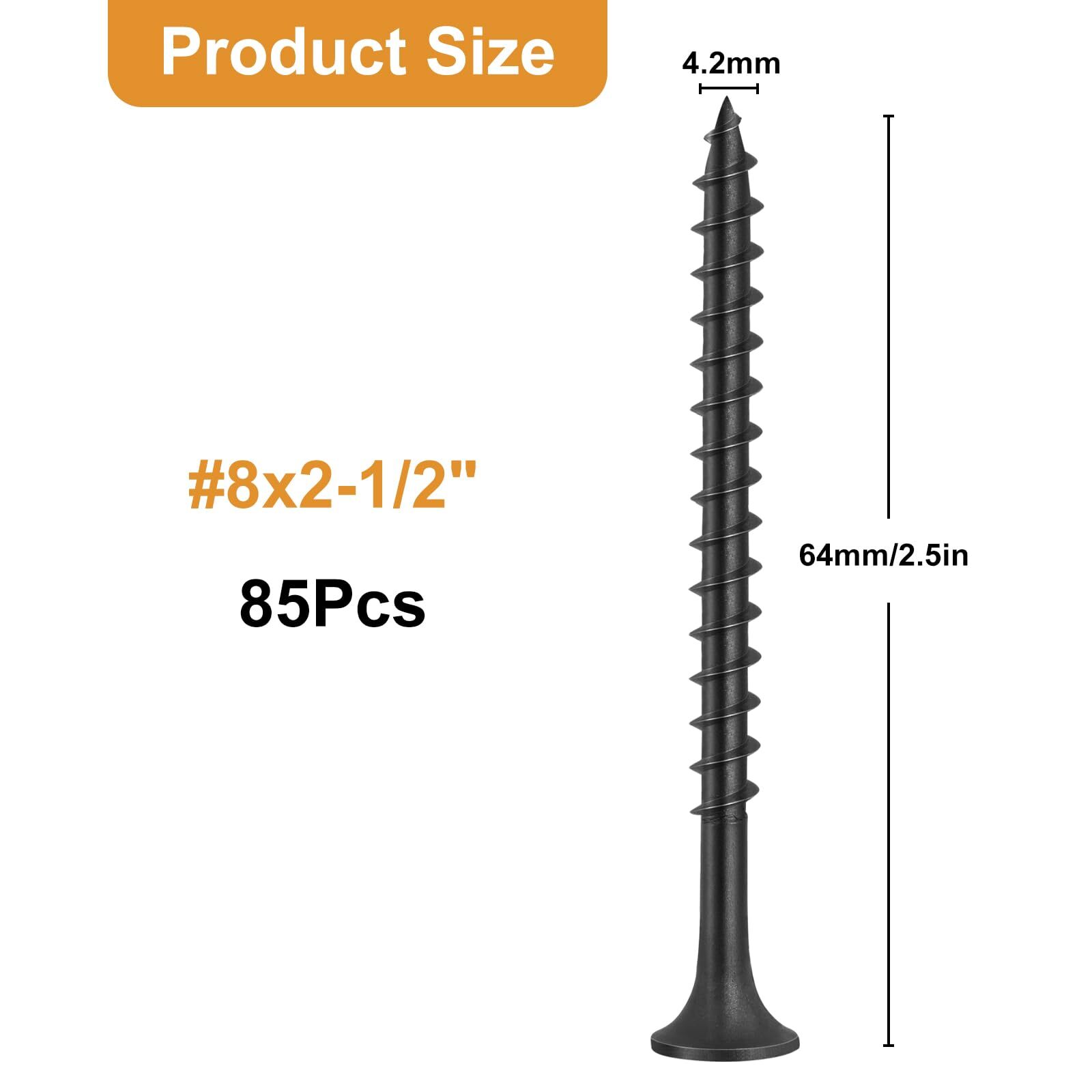85pcs #8 × 2-1/2 inch Drywall Screws, Black Wood Screws, Coarse Thread Sheetrock Screws, Phillips Head Drive, High Hardness Black Screws for Drywall, Sheetrock, Wood High Hardness Drywall Screws: black drywall screws made of high-quality crabon steel, strong and durable, not easy to deform or snap off. Surface treated with black oxide, which has higher corrosion resistance and anti-rust effect. Well Made Wood Screws: These black wood screws have a sharp tip,coarse thread,bugle head and a cross-drive flat. They are essential in construction and renovation projects due to their ability to provide a strong, secure attachment while minimizing damage to the drywall. Package Includes: You will get 85pcs #8 × 2-1/2 inch sheetrock screws and a nice clear sorting storage box. They are ideal for attaching drywall or gypsum to wood studs and general interior wood applications. Superior Process: Coarse thread design effectively grab wood stubs, and sharp point can help pierce through drywall to achieve fixed effect. The tapered bugle head that countersinks easily without damaging the drywall paper cover. Phillips drive head helps ensure that these black screws are driven straight with strong holding power. Widely Applications: These dry wall screws are excellent for drywall, wall board, plaster board, sheet rock, gypsum board, and other materials. Designed specifically for securing drywall or gypsum board to wood or metal studs. Can be ideal for your home, office, or workplace. 85pcs #8 × 2-1/2 inch High Hardness Drywall Screws Shipping We offer FREE shipping on all orders! We ship within Three business days of payment, usually sooner. We use a selection of shipping services such as UPS, FedEx, USPS etc. We only ship to the lower 48 states, no APO/FPO addresses or PO Boxes allowed. Local pickups and combined shipping options are not provided at this time. Return You can return a product for up to 30 days from the date you purchased it. Any product you return must be in the same condition you received it and in the original packaging. Please keep the receipt. Payment We accept payment by any of the following methods: PayPal Please pay as soon as possible after winning an auction, as that will allow us to post your item to you sooner! Feedback Customer satisfaction is very important to us. If you have any problem with your order, please contact us and we will do our best to make you satisfied. Contact Us If you have any queries, please contact us via ebay. We usually respond within 24 hours on weekdays. Please visit our eBay store to check out other items for sale! Thank you for shopping at our store.