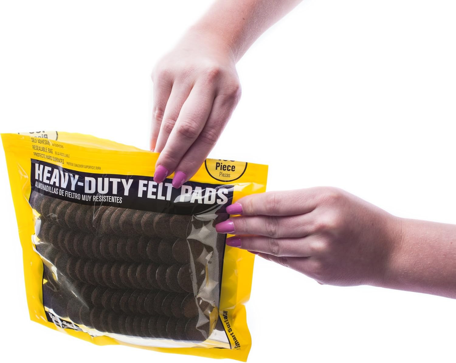 8827 Heavy Duty Self Adhesive Furniture Felt Pads 1-Inch Round, Brown Product Details Product Dimensions: 6.25"L x 1.5"W x 5.25"Th Number of Items: 160 Recommended Uses For Product: Sofa, Table, Chair, Desk Special Feature: Heavy Duty, Non-Slip, Anti-Scratch Number of Pieces: 160 Grip Material: Felt Unit Count: 160 Count Manufacturer: Smart Surface Part Number: HM-41KJ-ZYE8 Item Weight: 3.3 ounces Item model number: 8-8827 Is Discontinued By Manufacturer: No Size: 1-Inch Round Thickness: 0.19 Inches Installation Method: Self-Adhesive Item Package Quantity: 160 Cutting Diameter: 1 Inches Special Features: Heavy Duty, Non-Slip, Anti-Scratch Usage: Commercial/Residential Batteries Included?: No Batteries Required?: No Assembled Diameter: 1 Inches Brand: Smart Surface Material: Felt Color: Brown Surface Recommendation: Laminate, Tile, Hardwood Shape: Round 1-Inch Round Brown Self-Adhesive Furniture Felt Pads 160-Piece Value Pack in Resealable Bag. Simply peel and stick to a clean dry surface. Protects Hard Surfaces including Hardwood, Linoleum, Ceramic Tile & Laminate Also makes furniture slide and easier to move on hard surfaces 1-inch size is ideal for chair legs, and can be also used on a variety of other furniture items.
