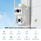 Dual-Lens with Dual Screen Auto Tracking PTZ WIFI Camera Dual lens, Dual screen, Notifications alarm, humanoid tracking, two way voice intercom 360 monitoring, full color night vision, IP66 waterproof, mobile phone remote monitoring,Share video, SD card storage, 24 hours video recording Main Features: - Dual lens camera. Top Lens is 3.6MM; Bottom Lens is 3.6MM - Dual-lens dual-sensor dual-screen, wide-angle Viewing + Long Distance Viewing to achieve clear monitoring from far and near; - Dual light source design, built-in infrared light + white light, night vision infrared and night vision full color can be set; - Pan Tilt Move: Bottom Lens: Horizontal: 270 degree; Vertical: 90 degree. - 2.4G WIFI + RJ45 network port for Internet access; - Support TF storage and cloud storage (need pay in iCSee app); - Two-way voice intercom, two-way video synchronous recording and playback - Humanoid detection Smart Alert: Motion Triggered with Alarm, APP Push notifications and Alarm recording - Auto Tracking: When ip camera detects object moving, it will auto move follow the object. -Smart Phone APP name: "iCSEE" from Google Play or iOS APP Store Packing List: 1x PTZ Camera / 1x User Manual 1x Power Supply / 1x Screws Bag 4MP 8MP comparison 4MP camera version: Means that the single lens is 2MP, so the dual-lens is 2MP+2MP=4MP. 8MP camera version: Means that the single lens is 4MP, so the dual-lens is 4MP+4MP=8MP. Dual Lens and Dual Screen There are 2 video screens in APP, the upper one is fixed position camera and the lower one is PTZ camera. 270° Pan & 90° Tilt Rotate Due to the horizontal 270° and the vertical 90 °, you can remotely control the wifi outdoor camera to view every corner via your mobile phone. Real Two Way Audio Built in microphone and speaker,support real time video,which allows you talk with your visitor in real time wherever you are. Smart Night Vision Built -in White LED and IR LED, you can choose color night vision or infrared black and white night vision. IP66 Waterproof / Dustproof The camera is equipped with IP66 case , which is waterproof, sun-proof and dust-proof. It is suitable for any environment. AI Human Detection Alerts Quickly finds human targets and immediately sends App notifications to your phone so you can see what's happening anywhere. AI Auto Tracking When someone passes through the protected area, the camera will detect the person's movement and follow the person. Support TF Card Storage and Cloud Storage(Need Pay For) The camera supports up to 128GB TF card local backup and also provides cloud storage service(Need to pay extra cost). 2.4Ghz Wifi Connection & LAN Connection Powered by DC12V adapter, you can connect the camera to Wi-Fi network. you can setup wifi connection of the camera or LAN Search with network cable connected to router, work with 2.4G wifi only (Does not support 5G).