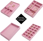 8Pcs Velvet Jewelry Organizer Tray, Stackable Trays Storage Pink Product Details Color: Pink Brand: TOUNALKER Material: 板纸 Style: Stylish Special Feature: Stackable Recommended Uses For Product: Ring Product Dimensions: 2"D x 2"W x 1"H Target Audience: Women Shape: Rectangular Occasion: Wedding, Birthday, Mother s, Valentine's Day Mounting Type: Table Top Inner Material: Velvet Number of Drawers: 8 Item Weight: 0.88 Kilograms Number of Compartments: 18 Jewelry Storage Type: Jewelry Tray Number of Items: 8 Manufacturer: Jingtian Item Weight: 1.94 pounds Country of Origin: China Item model number: US-JT20230406-011 Special Features: Stackable Included Components: Includes 8 jewelry trays: 18-compartment tray (2), 1-compartment tray (2), ring display tray (2), necklace and bracelet tray (2). Each size is 8.3 inches x 5 inches x 1 inch. Batteries Included?: No Batteries Required?: No Color: Pink Brand: TOUNALKER Material: 板纸 Style: Stylish Special Feature: Stackable Recommended Uses For Product: Ring Product Dimensions: 2"D x 2"W x 1"H Target Audience: Women Shape: Rectangular Occasion: Wedding, Birthday, Mother s, Valentine's Day 【8pcs Jewelry Drawer Organizer】Includes 8 jewelry trays: 18-compartment tray (2), 1-compartment tray (2), ring display tray (2), necklace and bracelet tray (2). Each size is 8.3 inches x 5 inches x 1 inch. 【Premium Velvet】Made of high quality velvet and sturdy laminate, the jewelry organizer are soft to the touch and sturdy enough to better store and protect your jewelry from damage. 【Stackable & Adjustable】Stackable design makes it possible to place it on dressers, drawers, shelves, etc., greatly saving your space. The removable divider can accommodate different sizes of jewelry storage needs. 【Versatile Tray】Our jewelry display tray are stylish looking and can be suitable not only for personal use at home, but also for jewelry display trays in jewelry stores. A high class product you deserve! 【Perfect Gift】Exquisite workmanship, stylish and durable, loved by women. You can give it as Christmas, Mother's Day, Valentine's Day, birthday gift to your mom, girlfriend, friend, they will feel your heart.