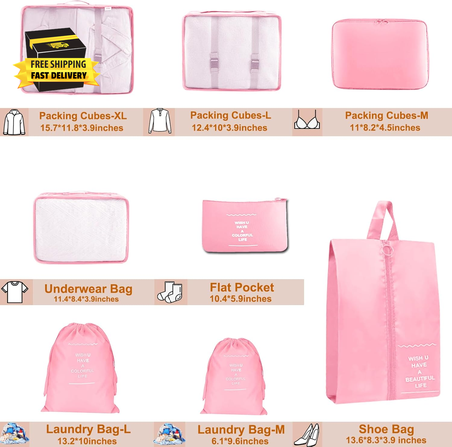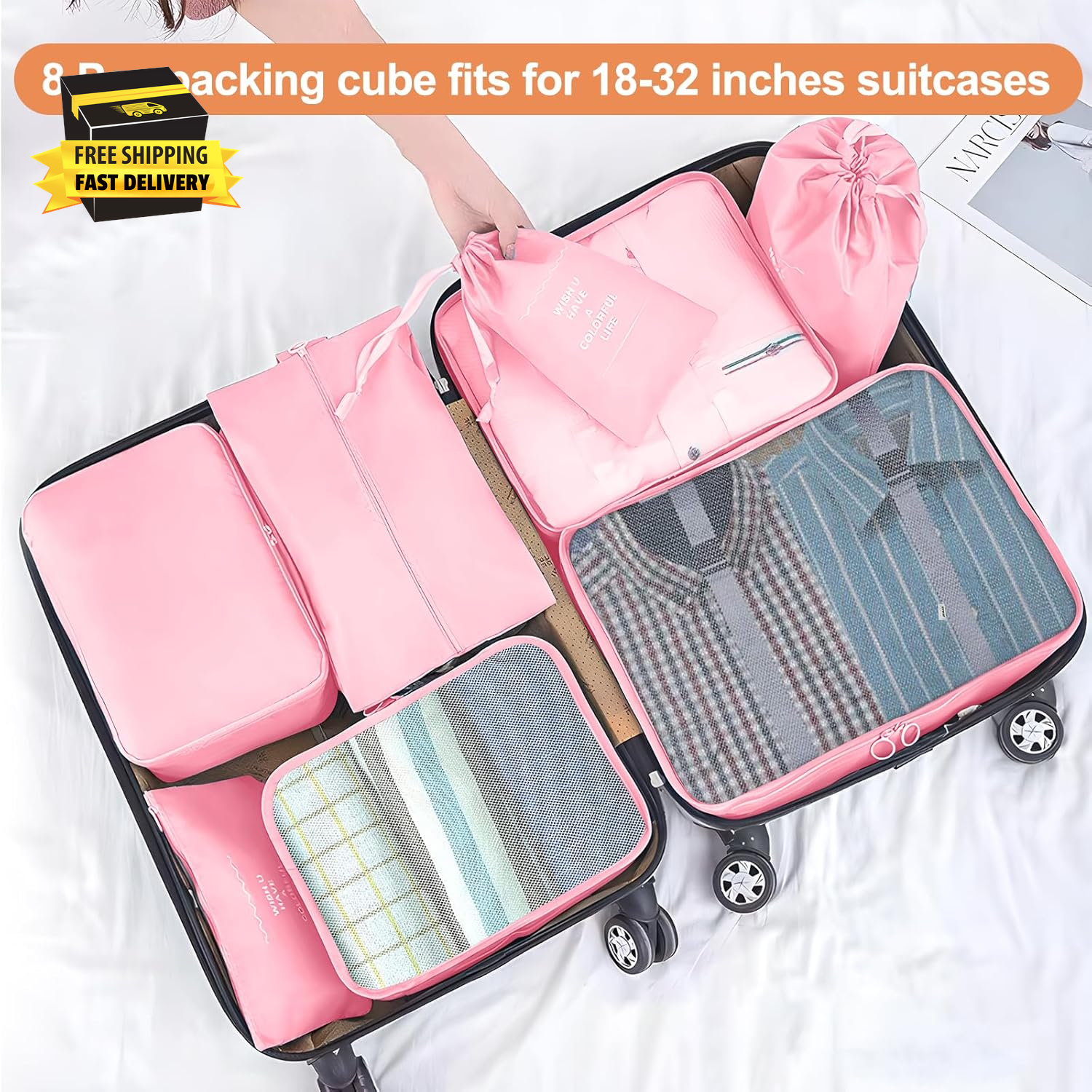 Store New Arrivals Add to Favorite View Feedback Contact 8 Set Packing Cubes for Suitcase, Compression Packing Cubes for Carry on Suitcases, Luggage Organizer Packing Cubes for Travel Essentials, Large Mesh Luggage Packing Cubes for Suitcases ⭐️⭐️⭐️⭐️⭐️ Description Item model number AM-OldHK-FA Closure Type Zipper Number of Items 1 Color Pink Material Nylon Number of Sets 1 Item Weight 12.6 ounces Batteries required No Shape Rectangular Size 8 Set Recommended Uses For Product Travel, Organizer, Clothing, Home, Camping Special Feature Waterproof, Lightweight, Foldable, High volume, Handle Product Dimensions 11.8"L x 0.7"W x 12.6"H Included Components Underwear Bag, Laundry Bag, Flat Bag, Shoes Bag, Packing Cubes Travel Packing Cubes Set: Our 8 set travel packing cubes include 2 laundry bags, 3 mesh breathable packing cubes (1 large, 1 medium, 1 small) 1 underwear packing cube along with a shoe bag, and a flat bag. for essentials like jackets, shirts, trousers, underwear, toiletries, and more. Extreme Space Management: The luggage packing cubes set contains different sizes of mesh, breathable, compressible cubes for your clothes and other essential items you may need during your travels. You have enough luggage organizers and packing cubes to choose from to store them. Keep your clothes and accessories clean and tidy with independent storage. These bags will prevent your clothes from getting messed up by movement in your suitcase whilst traveling. Soft and Lightweight Material: These luggage organizers for a suitcase are made of soft nylon fabric, and won't scratch your clothes. The fabric is lightweight yet durable and resistant to water. The top breathable mesh allows you to quickly find a specific item of clothing and keeps your clothes fresh, while professionally done seams ensure long-lasting durability and prevent scratching. Multiple Colours Available: This packing cases is available in a different colours to match customers with different colour preferences for their suitcases. The packing cubes also come in different sizes so you can dispense them according to the size of your luggage, perfect for 20-inch suitcases and 22-inch luggage, as well as rucksacks, travel bags, handbags and more. Essentials for Travelling at Home: These packing cubes can be easily folded and stored when not in use, without taking up much space. You can also use them as storage tools for your clothes at home and save space in your drawers. Product Description YEEYAA Luggage Cubes for Suitcases 8 Set, Large Capacity, Multiple Sizes Our large-capacity packing cubes for suitcases allow you to easily store clothing、shoes and other supplies. Lightweight and breathable mesh material Multiple sizes available Smooth zip Easy to organize Meet All Your Travel Storage Needs At Once Suitcase Organizer Bags Set Packing List : XL Packing Cube * 1 L Packing Cube * 1 M Packing Cube * 1 Underwear Bag *1 Shoe Bag *1 Wash Bag *2 Flat Pocket *1 Multiple Sizes Suitcase Packing Cubes-Dimension Details Helps Organize and Categorize To Save More Space and Time Product Features Waterproof Fabric Our luggage organizer bags are made of premium waterproof and moisture-resistant material, which can avoid water damage and wet weather. Provide a better experience for storing your clothes. Takes Up Little Space Built in lock buckle design, you can further tighten your clothes and space to make room for your luggage. Folding Storage & Mesh Design Mesh packing cubes can be folded to be stored. The top breathable mesh allows you to quickly find a specific item of clothing. Various Application Scenarios Why choose our YEEYAA Travel Packing Organizers? YEEYAA is a shop that focuses on developing quality travel packing cubes and are committed to providing better suitcase organizer products and services to our customers. Make your journey easier and more convenient. ABOUT US We offer the best prices around on high quality products. Our E-store includes media such as books, movies, music and games while offering electronics, toys, sporting apparel, clothing, tools, general home, garden items and more. SHIPPING We are always working hard to ensure your package arrives as soon as possible. Please understand that some factors like weather, high postal traffic, and the performance of shipping companies are outside of our control. We offer free shipping to the lower 48 states and ship within 2 business days of payment, usually sooner. We do not accept P.O. Boxes. Please provide a physical address. For shipping outside of the continental USA, we only use eBay's Global Shipping Program.The item is shipped to KY and then sent to the rest of the world. International customers are responsible for all duties and taxes. Continue to check out in order to calculate costs for shipping the item to your country. Messages regarding eBay's Global Shipping Program MUST be directed at eBay EXCLUSIVELY. RETURNS We offer a 30-Day Return Policy on items which you are not completely satisfied with. You have the option for a full-refund or an exchange of the item. No returns are available on items shipped outside of the USA. PAYMENT We accept PayPal. CONTACT US This page content is yet to come Please ad us to your favorite seller and visit again later Thank You CUSTOMER SATISFACTION We try our very best to make sure every customer is completely satisfied. If there's a problem, message us! We're happy to help. WE ACCEPT Copyright © 2021 AutoDS. | All Rights Reserved