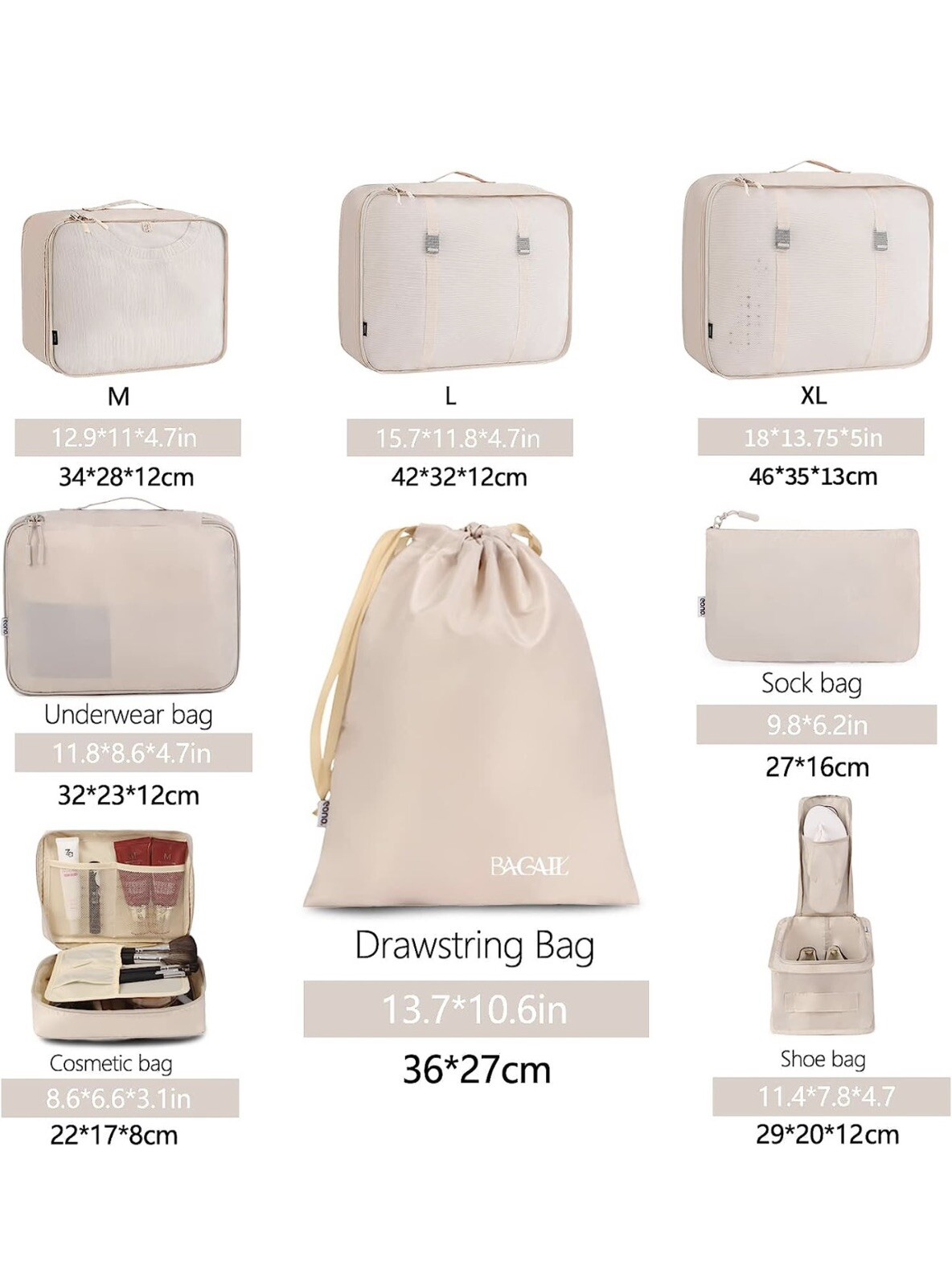 8 Set Packing Cubes Luggage Packing Organizers for Travel Accessories Cream. Condition is New. Shipped with USPS Priority Mail.