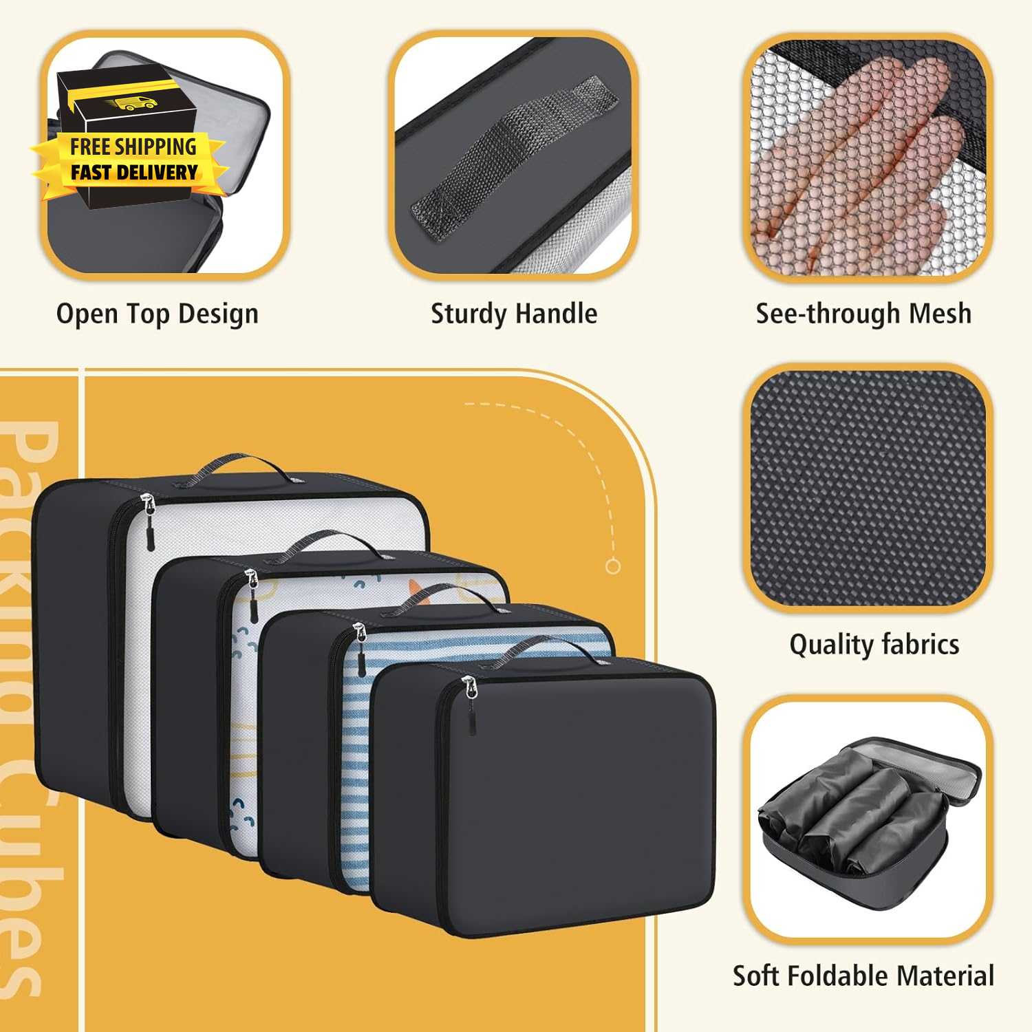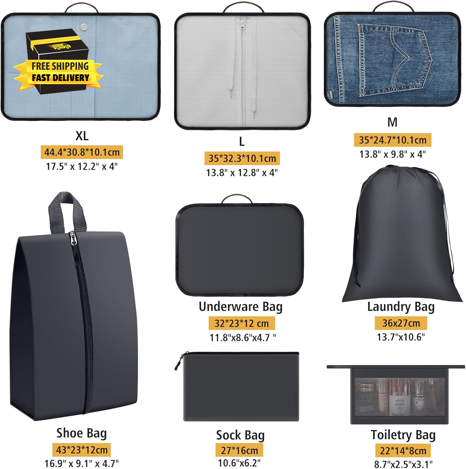 Store New Arrivals Add to Favorite View Feedback Contact 8 Set Packing Cubes for Suitcase and Luggage, Organizers for Travel Essentials Accessories, 4 Size (Extra Large, Large, Medium, Small) with Toiletries/Laundry/Shoes/Sock Bags (Grey) ⭐️⭐️⭐️⭐️⭐️ Description Closure Type Zipper Batteries Required? No Number of Items 8 Item Package Quantity 8 Color Grey Material Cotton Number of Sets 8 Item Weight 11.7 ounces Shape Rectangular Batteries Included? No Recommended Uses For Product Travel, Moving Special Features Lightweight, Foldable, Privacy Protection Special Feature Lightweight, Foldable, Privacy Protection Product Dimensions 17"L x 11.8"W x 3.9"H 【What Included】 8 travel bags including clothes bags*4 (XL+L+M+S) and laundry bag*1, shoe bag*1, toiletry bag*1, sock bag*1 to meet all your needs during the trip. 【Lightweight】 Lightweight oxford fabric packing cubes neatly store clothes in your luggage without adding extra weight. The high density fabric is sturdy and not easy to tear. For protecting fragile toiletries, extra added cotton to the toiletry bag, which can effectively avoid breakage of stored items. 【Protect Privacy】 Mesh clothing bags and toiletry bags make it easy to find what you need. And the breathable mesh also keeps your clothes fresh. The underwear, sock & laundry bags are solid to protect your privacy. 【Soft Foldable Material】 Our storage bag with foldable material, when you don’t need to use just a handful of pressure can be placed anywhere you want to put, compared with other packing cubes, EpicTotes greatly save your space, to help restore your tidy environment. 【Travel & Moving Support】 Help to organize your suitcase and luggage when planning for a travel, business trip, Christmas vacation, honeymooon trip, moving. Save space and make everything neat and orderly. 8 Set Packing Cubes for Suitcase and Luggage, Organizers for Travel Essentials Accessories, 4 Size (Extra Large, Large, Medium, Small) with Toiletries/Laundry/Shoes/Sock Bags (Grey) ABOUT US We offer the best prices around on high quality products. Our E-store includes media such as books, movies, music and games while offering electronics, toys, sporting apparel, clothing, tools, general home, garden items and more. SHIPPING We are always working hard to ensure your package arrives as soon as possible. Please understand that some factors like weather, high postal traffic, and the performance of shipping companies are outside of our control. We offer free shipping to the lower 48 states and ship within 2 business days of payment, usually sooner. We do not accept P.O. Boxes. Please provide a physical address. For shipping outside of the continental USA, we only use eBay's Global Shipping Program.The item is shipped to KY and then sent to the rest of the world. International customers are responsible for all duties and taxes. Continue to check out in order to calculate costs for shipping the item to your country. Messages regarding eBay's Global Shipping Program MUST be directed at eBay EXCLUSIVELY. RETURNS We offer a 30-Day Return Policy on items which you are not completely satisfied with. You have the option for a full-refund or an exchange of the item. No returns are available on items shipped outside of the USA. PAYMENT We accept PayPal. CONTACT US This page content is yet to come Please ad us to your favorite seller and visit again later Thank You CUSTOMER SATISFACTION We try our very best to make sure every customer is completely satisfied. If there's a problem, message us! We're happy to help. WE ACCEPT Copyright © 2021 AutoDS. | All Rights Reserved