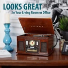 If you are looking for a record player loaded with features, you are in the right place. The Navigator 8-in-1 Solid Wood Record Player is a perfect blend of modern technology and classic nostalgic design. Perfect for vinyl lovers with its 3-speed turntable, the Navigator features a CD Player, a cassette tape player, and an FM radio with analog tuner. With built-in Bluetooth, you can now stream music from your tablet, smartphone or MP3 using Bluetooth. That’s not all – with 3.5mm Auxiliary Input, USB port and Headphone jack, the turntable opens a world of music possibilities that were unimaginable in the earlier vinyl days. This stylish retro turntable designed with real wood construction and smart front paneling is a great conversation piece! 8-in-1 ENTERTAINMENT CENTER – With vintage looks & modern features, this turntable plays and records your Vinyls to MP3 (Mac/PC software and USB cable included). It has a CD & cassette player, FM radio, Bluetooth, Aux & headphone jack for audio streaming from your smartphone NO STEREO SYSTEM OR EXTRA EQUIPMENT REQUIRED. Get it up and running in minutes. Retro looks combined with the convenience of modern technology make this record player a great value - ideal for beginners & vintage enthusiasts alike THREE SPEED BELT-DRIVEN TURNTABLE – This 3-speed (33 1/3, 45, 78 rpm) record player features UPGRADED PREMIUM SOUND QUALITY with minimum vibrations. It is perfect for your living room, bedroom or office and a great choice for vinyl lovers ALL THE CONTROLS YOU NEED – Features a volume knob, FM tuner and easy click buttons for input select, power, play/pause/forward/rewind, eject, program, shuffle, repeat, and a full function remote control EXPANDED CONNECTION OPTIONS – Extend the sound by connecting external speakers or an amplifier via the RCA Line outputs or bluetooth out technology. For personal listening, plug your headphones into the headphone jack.