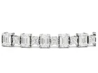 This 9 Ct Baguette Simulated Diamond 925 White Sterling Silver Tennis Link Bracelet is a stunning piece of jewelry perfect for various occasions such as engagement, Mother's Day, Christmas, and more. The bracelet features a beautiful design with a main stone of simulated diamond in a baguette shape, set in sterling silver. It is handmade and can be personalized as per the buyer's requirement, making it a unique and special accessory. The bracelet also includes features like an adjustable push lock closure, engraved charms, and is nickel-free.
