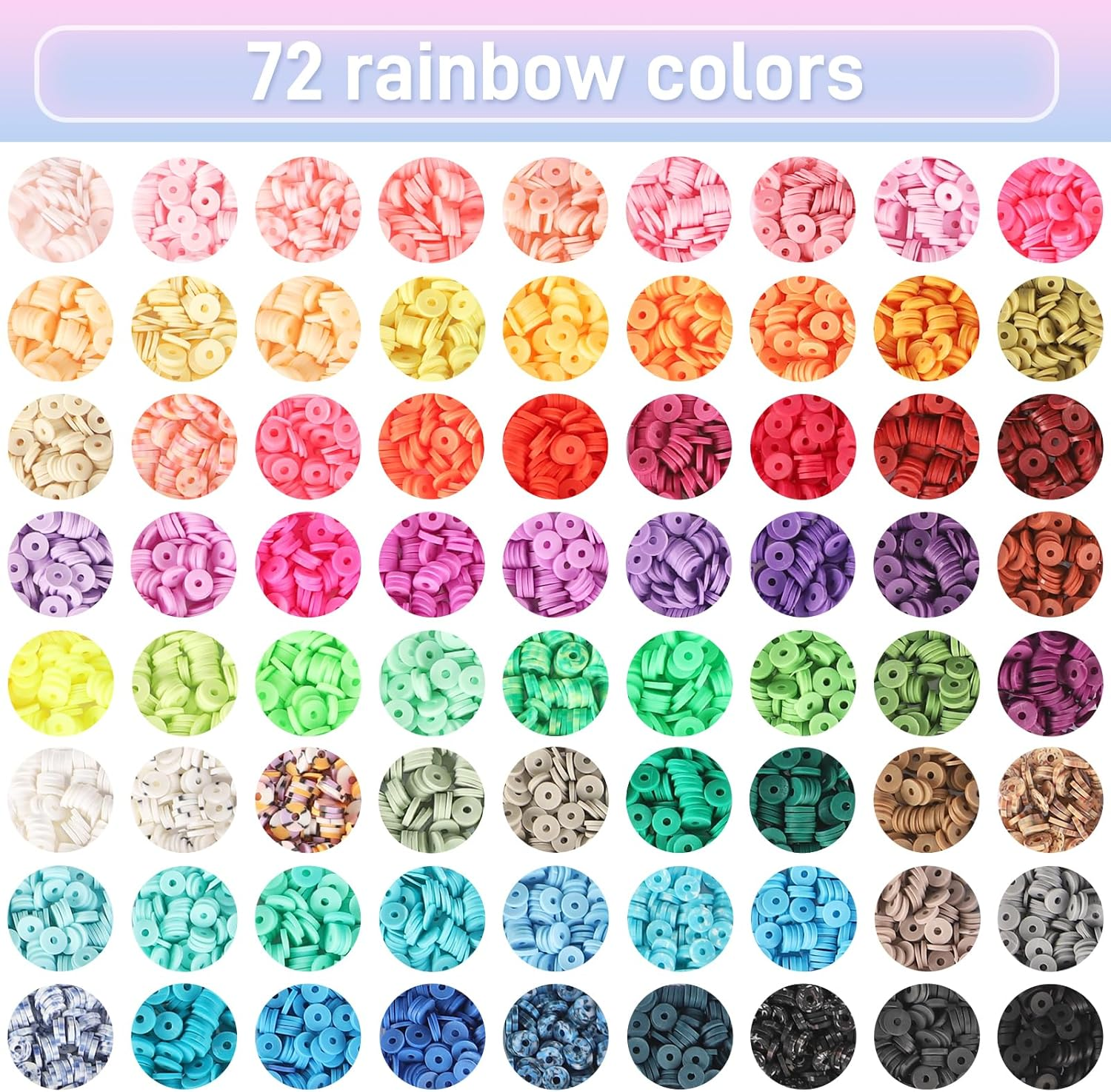 Menu Other Items Feedbacks About Us Contact Us Add To Favorites 9000 Clay Beads Bracelet Making Kit, 72 Colors Friendship Bracelet Beads, Polymer Heishi Beads with Charms for Jewelry Making, Gifts, Crafts, Preppy 【Super-Value Set】: 9000pcs clay beads, 72 rich colors, including several new mixed colors, gradient rainbow, a total of four color scheme: red, yellow, blue and green, the color is very classic, will not go out of fashion. 【Sufficient Quantity】: 3 boxes of 9000 clay heishi beads, you can make 50-80 bracelets or necklaces, depending on the size of your craft. Package includes 250 letter beads(A-Z), 50 jump rings, 10 lobster clasps, 10 random pendants, 20 square beads, 20 star beads, 1 roll of elastic thread, 1 roll of crystal thread. 【Safety】: Clay beads are made of polymer clay. Handcrafted, safe, skin-friendly and can be worn every day. Be careful not to wear them in the shower. The gold beads will fade. 【Enjoy DIY】Make jewelry with your family or friends with this clay beads kit! Improve your hands-on ability, stay away from computer games, and create a fun and harmonious atmosphere. 【Reliable Service】: If you have any problem during the using process, please give us feedback in time. We will provide the best solutions for you and our best service. Product Description Best teen girl gifts! Imagine Her Reaction as she opens her pretty clay bead box to see a beautiful Jewelry bracelet kit for the first time. It’s a Precious Moment that you’ll want to capture! Birthday Gifts Great birthday gifts for girls: making it a great girls' gift item for girls who like jewelry. it can be an entertaining party craft.Wow her with a beautiful DIY bracelet making kit for her Birthday! Christmas Gifts How exciting to image your kids getting different charms and beads every day from different creative advent, and when Christmas arrives, she makes her unique bracelet and necklace! Item Specification Style Classic Color 72 colors Included Components Clay,Jump Ring Material Silver, Gold Item Weight 1 pounds Theme Jewelry,Rainbow Size 9000pcs Age Range (Description) Kid Seasons All Seasons Art Craft Kit Type Clay Beads Bracelet Making Special Feature Waterproof Package Dimensions 8.23 x 5.47 x 2.44 inches Number of Pieces 9000 SHIPPING FREE FREE SHIPPING We are always working hard to ensure your package arrives as soon as possible. Please understand that some factors like weather, high postal traffic, and the performance of shipping companies are outside of our control. We offer free shipping to the lower 48 states. We do not accept P.O. Boxes. Please provide a physical address. If you have a problem or question regarding your transaction please contact us immediately. We will work with you to resolve any problem you may have. Thank you