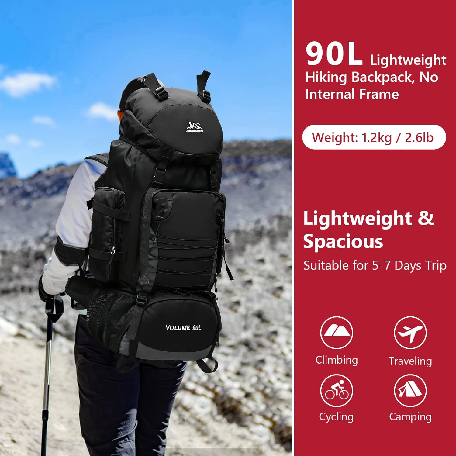 Store New Arrivals Add to Favorite View Feedback Contact Hiking Backpack with Rain Cover, 90L Camping Backpack, Lightweight Travel Daypack for Hiking Climbing Camping Touring -No Internal Frame Description Age Range Description Adult Capacity Total 90 Liters Number Of Items 1 Color Black Product Dimensions 9 x 13.38 x 29.5 inches Country of Origin China Item Weight 2.64 pounds Department unisex-adult Units 1 Count 【Ideal & Outdoor Companion】: 90L ultra lightweight hiking backpack, only 2.6 pounds, no internal frame, reduces the load weight of backpack, allowing you to carry more other items. 90L large hiking backpack size: 75x35x25cm/ 29.5x10x13.8x inches. Enough for a 5 or 7 days trip. The maximum loading bearing is 45lb. Suitable for travel, hiking, mountaineering, camping and everyday use. Note: Please confirm the product size indicated on this page before ordering. 【Durable Hiking Daypack】:This climbing backpack is designed for travel enthusiasts. Hiking backpack is made of rip-resistant, waterproof and wear-resistant polyester. We've improved the quality of the zipper and stitched the straps and areas prone to tearing to make the backpack more durable. The sturdy look makes this excellent camping backpack suitable for all kinds of adventures, making it an excellent choice for hikers, traveler, hunters and fishermen. 【Large Capacity & Multicompartment】: 90L travel backpack is designed with spacious main pocket and multiple compartments for easy storage. The hiking bag has 8 large compartments, Including 1x top pocket, 1x drawstring main pocke, 1x front pocket, 1x shoes bottom pocket, 2x side water bottle pockets, 2x side ziper pockets. Partition storage, easy to store, more tidy! 【Comfortable and Ergonomic】: Three adjustment system, consisting of a adjustable shoulder, waist, and chest belt. Pressure is evenly distributed, effectively prevent backpack from shaking, reduce discomfort caused by bag leaning backwards. Chest strap can be adjusted up and down, suitable for men and women of any age. Outdoor backpack with 8 adjustable straps: used to tie backpacks or hang sleeping bags, tripods and other equipment, convenient for hiking, camping. 【Equipped with Rain Cover】: To keep your product out of the water and dust, we have specially equipped a rain cover, protecting your valuables from rain and keeping everything dry and clean. Notes: We are constantly upgrading and adjusting travel bag . If you have any questions about our products, please ! Product Description 1 Hiking Backpack 2 Camping Backpack 3 Cycling Backpack 4 Skiing Backpack 5 Travel Backpack Multi-compartments hiking backpack, Partition storage, easy to find! Hiking Backpack Includes: 1 x Main Pocket, 1 x Front Pocket, 2 x Side Zipper Pockets, 2 x Side Mesh Pockets , 1 x Bottom Shoe Pocket , 1 x Top Pocket. 90L Large Capacity Hiking Backpack No internal Frame, lightweight for trips of up to 7 days! Molle System - High capacity backpack with external extension design. Backpack with honeycomb mesh breathable padding, soft and breathable. Maximum weight capacity is 45 lbs. Carry more of your items. Features with adjustable waist belt and shoulder strap. Equipped with a rain cover to prevent dust and water 90L Water Resistant Hiking Backpack No fear of rain or dust! Prevent the water and dust into the backpack,protect your valuables from heavy rain and keep everything dry. Abrasion-resistant Material Thick fabric, tear-resistant, scratch-resistant, wear-resistant, suitable for various field environments. Water-resistant Surface Prevent the water into the backpack, protect your valuables from heavy rain and keep everything dry. Reinforced Suture Multi-layer stitching in the shoulder strap area for greater durability Breathable Padded Ergonomic padded, widened and thickened S-type shoulder straps and high elastic breathable back support. Easing burden, comfortable to use. ABOUT US We offer the best prices around on high quality products. Our E-store includes media such as books, movies, music and games while offering electronics, toys, sporting apparel, clothing, tools, general home, garden items and more. SHIPPING We are always working hard to ensure your package arrives as soon as possible. Please understand that some factors like weather, high postal traffic, and the performance of shipping companies are outside of our control. We offer free shipping to the lower 48 states and ship within 2 business days of payment, usually sooner. We do not accept P.O. Boxes. Please provide a physical address. For shipping outside of the continental USA, we only use eBay's Global Shipping Program.The item is shipped to KY and then sent to the rest of the world. International customers are responsible for all duties and taxes. Continue to check out in order to calculate costs for shipping the item to your country. Messages regarding eBay's Global Shipping Program MUST be directed at eBay EXCLUSIVELY. RETURNS We offer a 30-Day Return Policy on items which you are not completely satisfied with. You have the option for a full-refund or an exchange of the item. No returns are available on items shipped outside of the USA. PAYMENT We accept PayPal. CONTACT US This page content is yet to come Please ad us to your favorite seller and visit again later Thank You CUSTOMER SATISFACTION We try our very best to make sure every customer is completely satisfied. If there's a problem, message us! We're happy to help. WE ACCEPT Copyright © 2021 AutoDS. | All Rights Reserved