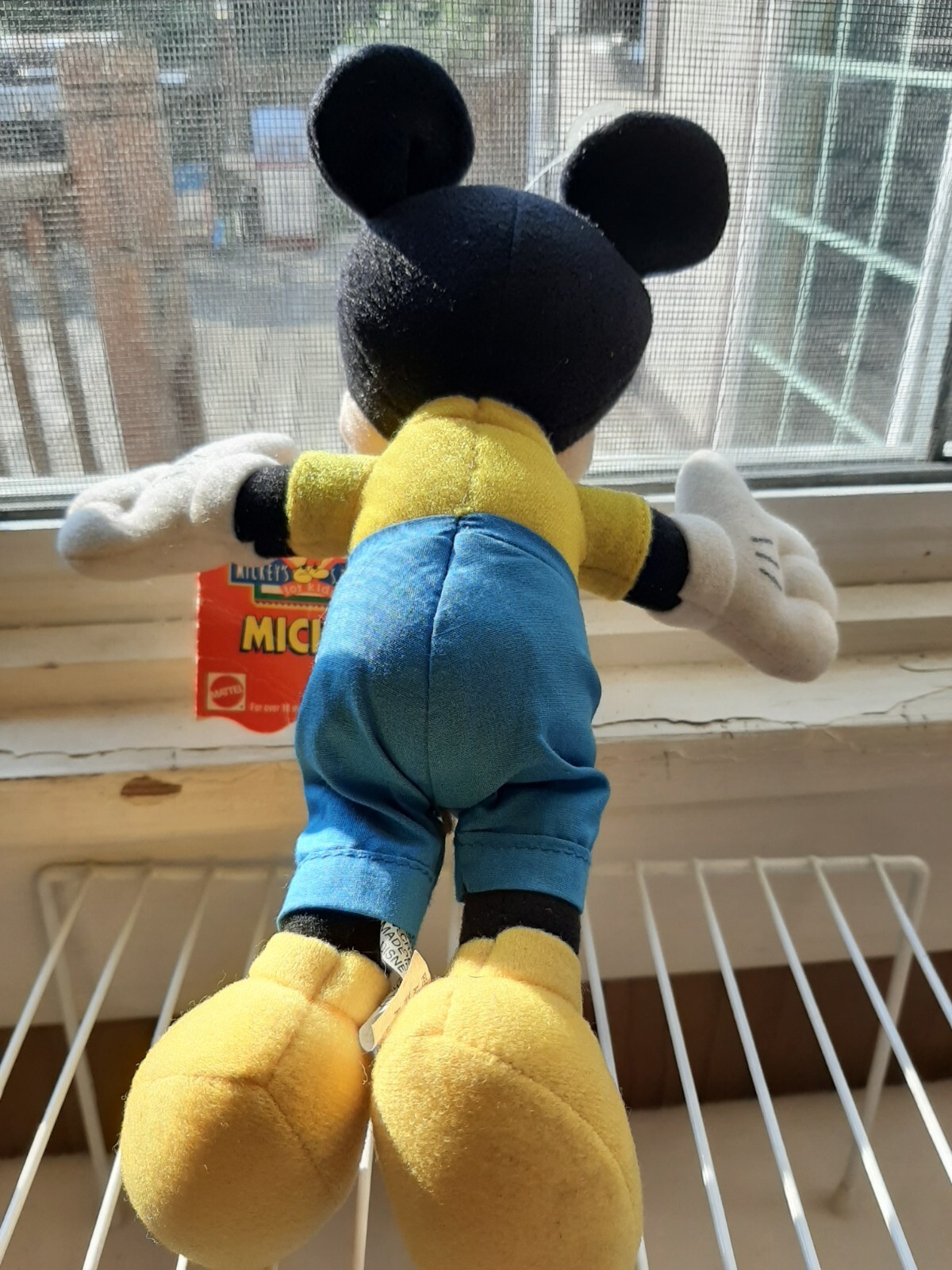 Mattel Vintage 90s Mickey's Stuff For Kids Plush Toy Tags Disney Mickey Mouse with tag In good pre-owned condition may show signs of wear from use/handling/storage/display. Please view all pics for condition/details/flaws/issues. SOLD AS IS There is damage to tag and some loose strings. There is/maybe marks/spots/dirt/debris please see photos 1-24, there is/maybe paint loss/sticker loss please see photos 1-24, there is lite discoloration please see photos 1-24, there are surface scratches to item please see photos 1-24, please see all photos for condition/issues/details.