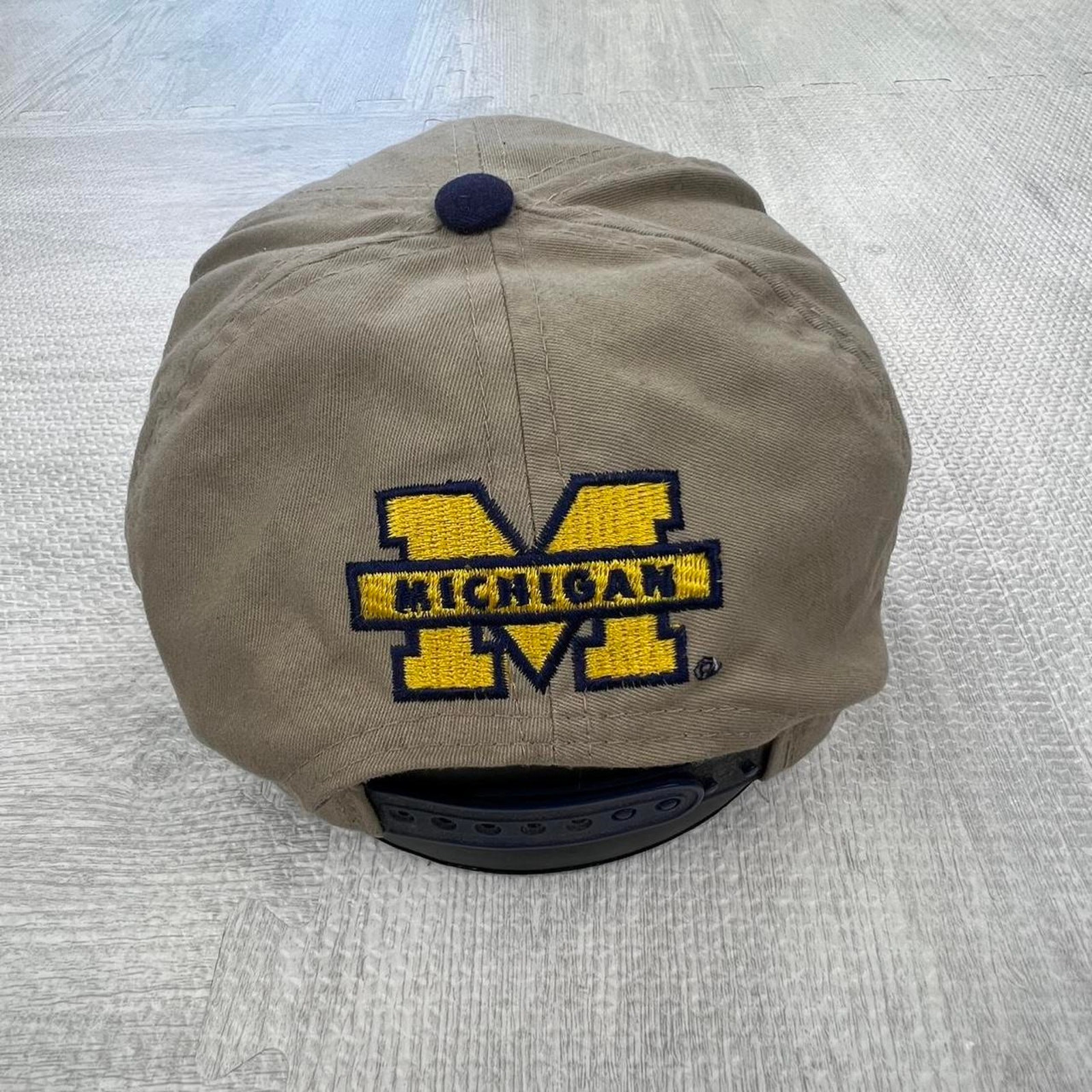 Vintage 90s university of Michigan Wolverines navy tan crazy cool embroidered hat cap strap back NCAA college sportswear streetwear boho retro Size: one size